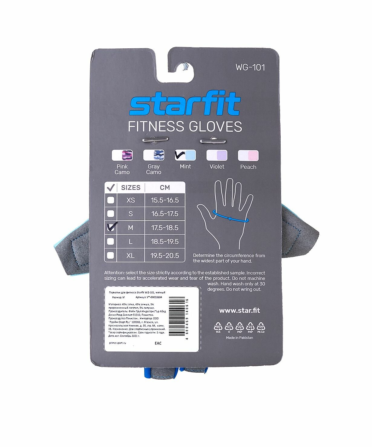 Перчатки для фитнеса STARFIT WG-101, мятный (M)