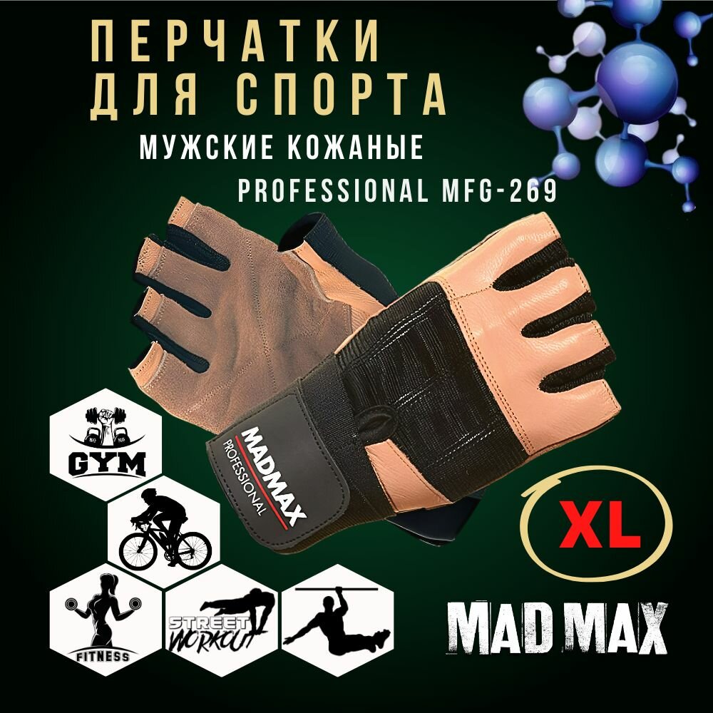 Перчатки с фиксацией запястья MadMax MFG-269 для фитнеса, мужские, натуральная кожа, размер XL (арт.2388)