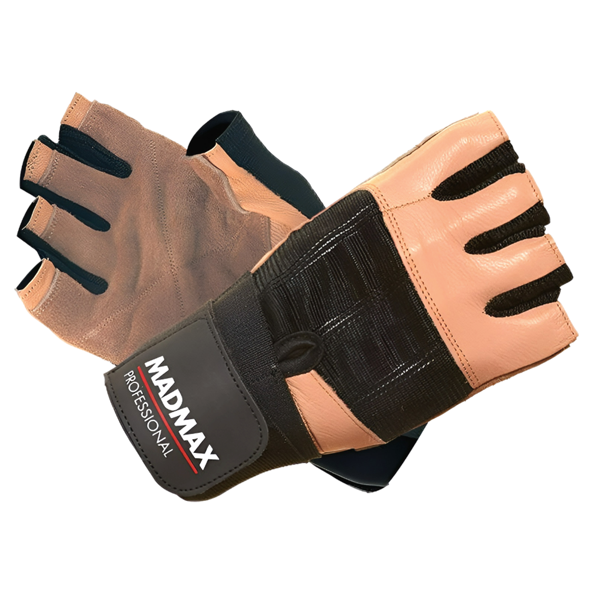 Перчатки с фиксацией запястья MadMax Professional MFG-269 Brown-Black, Размер М - Для тяжелой атлетики, воркаута, кроссфита, велоспорта, из натуральной кожи (арт.2364)