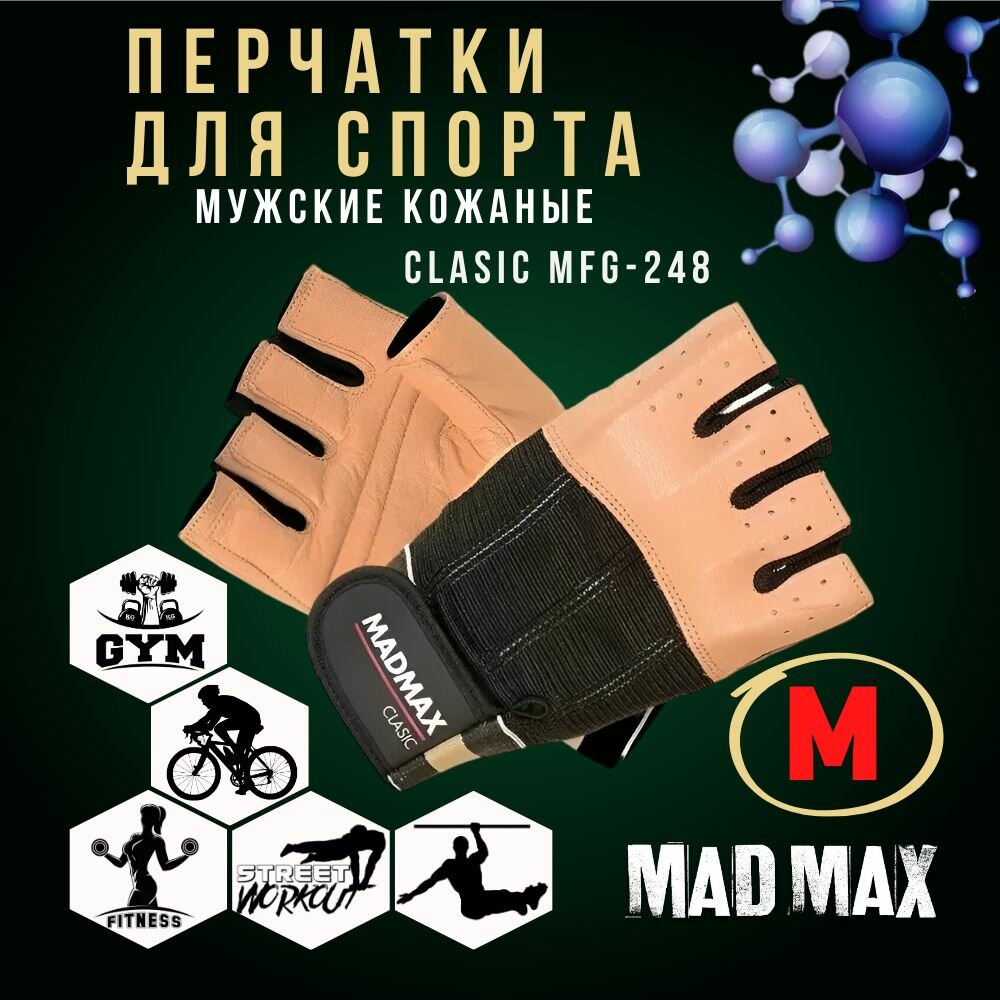 Перчатки MadMax MGF-248 для фитнеса, мужские, натуральная кожа, размер M (арт. 2210)