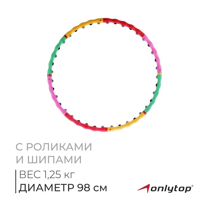 Обруч массажный ONLITOP, разборный с роликами и шипами, диаметр 98 см, вес 1,25 кг, разноцветный интересное: