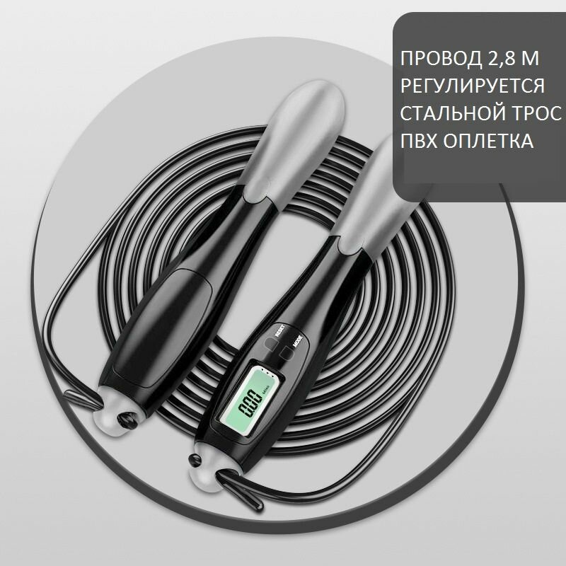 Умная скакалка для фитнеса комбинированная черно-серый, с электронным счетчиком, беспроводная с утяжелителями шарами интересное: