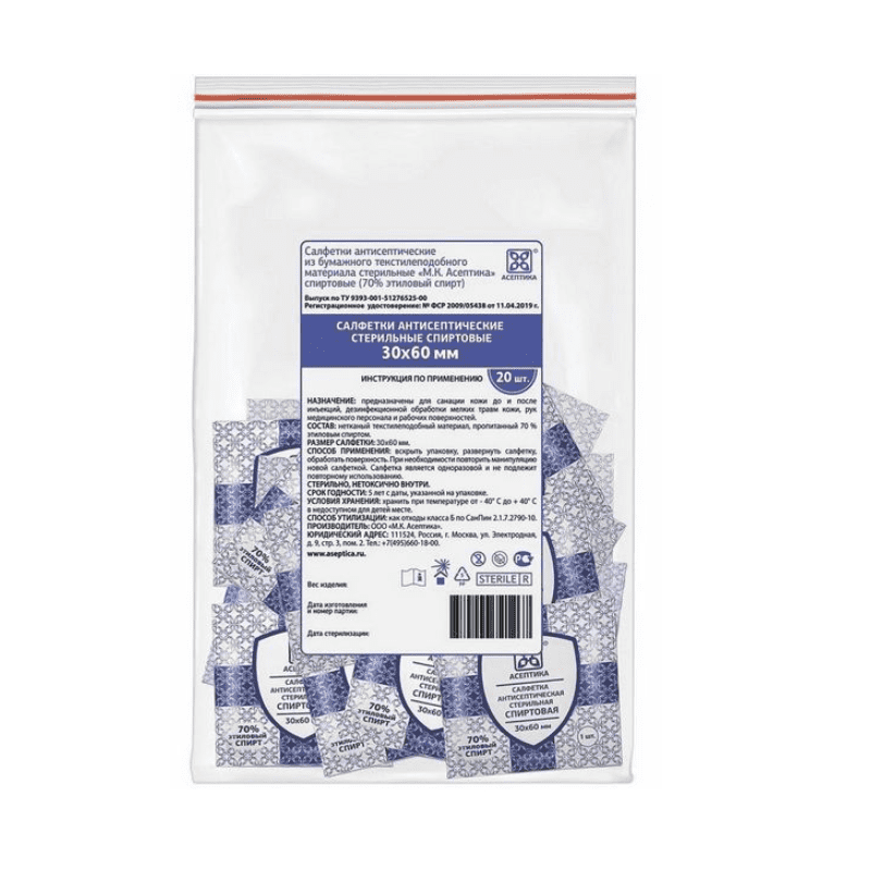 Салфетка спиртовая для инъекций Асептика 60x30 мм 20 шт. интересное: