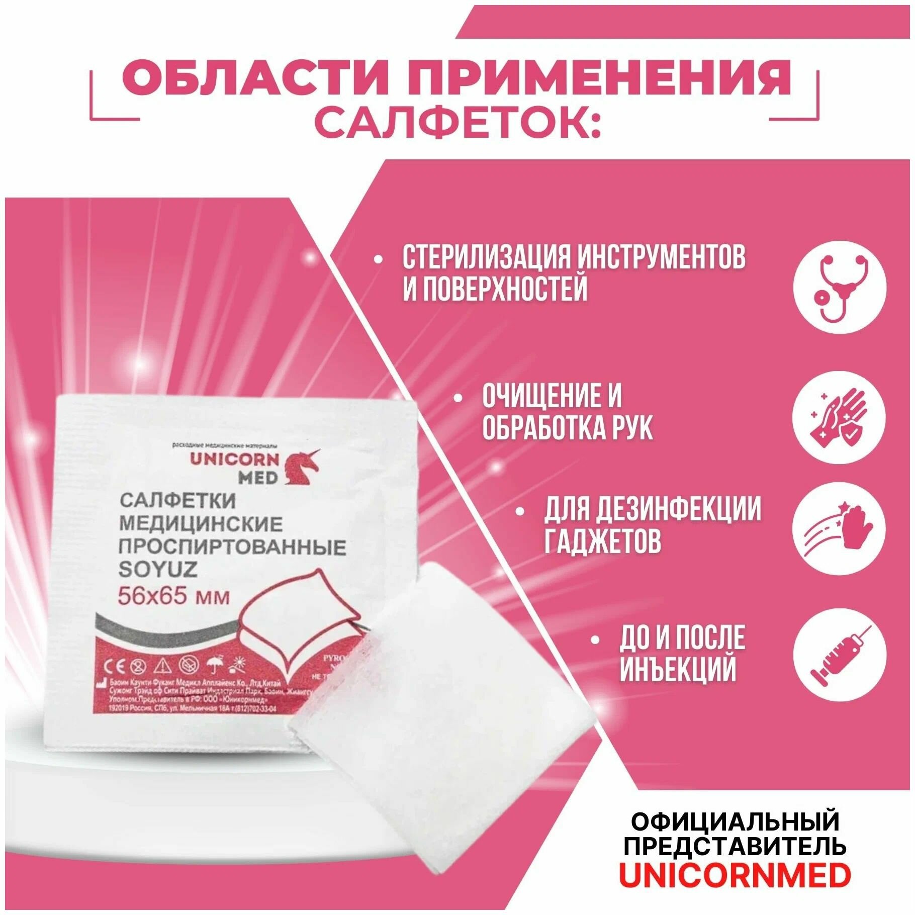 Спиртовые салфетки Unicorn Med SOYUZ, для инъекций, размер 110x125, 100 штук