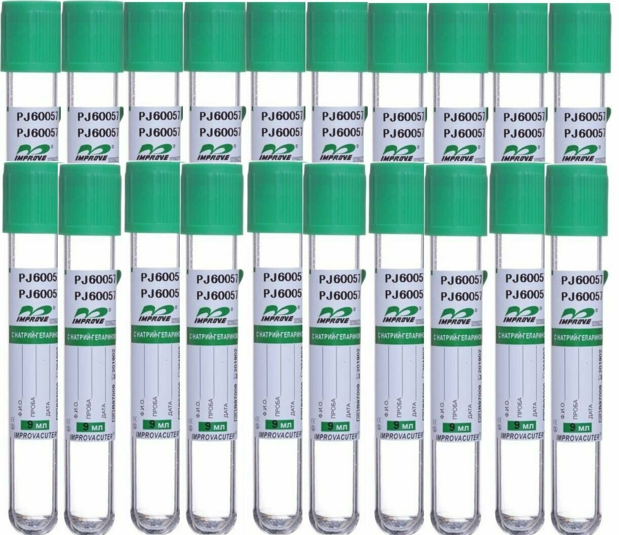 Вакуумная система для взятия крови. Пробирки вакуумные с Na-гепарином и гелем (20 шт), Иглы-бабочки (20 шт), Переходники (20шт)