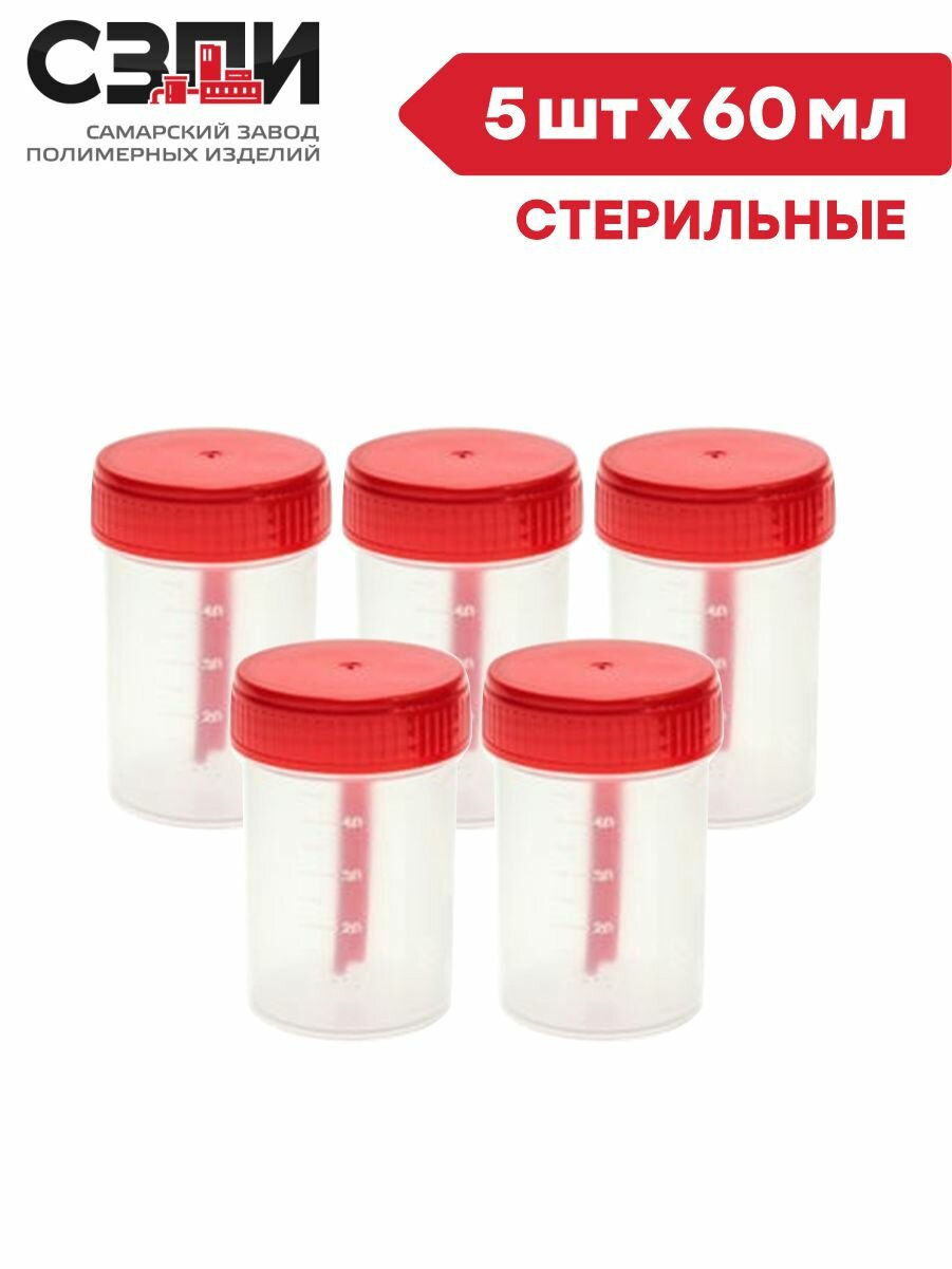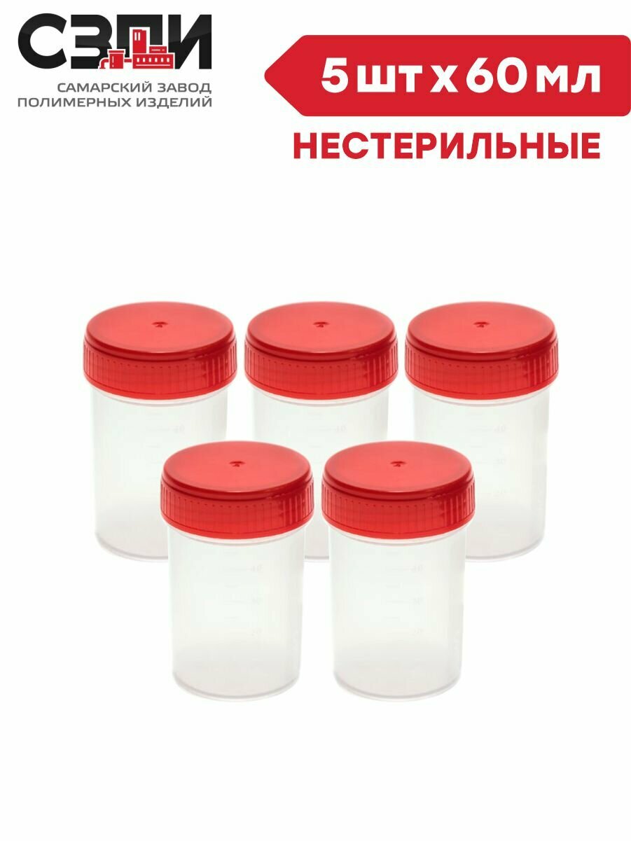 Комплект Баночка для анализов 60 мл нестерильная 5 шт/упак