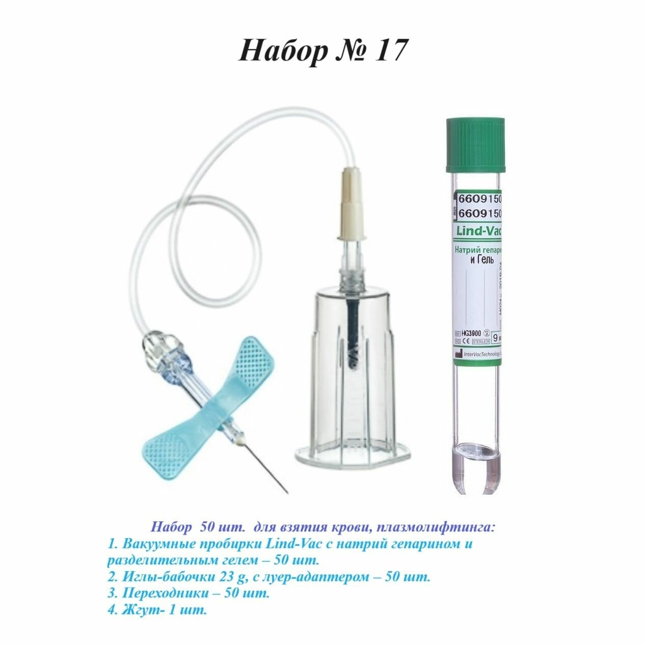 Набор для плазмолифтинга. Пробирки вакуумные с Na-гепарином и гелем (50 шт), Иглы-бабочки (50 шт), Переходники (50шт), Жгут венозный интересное: