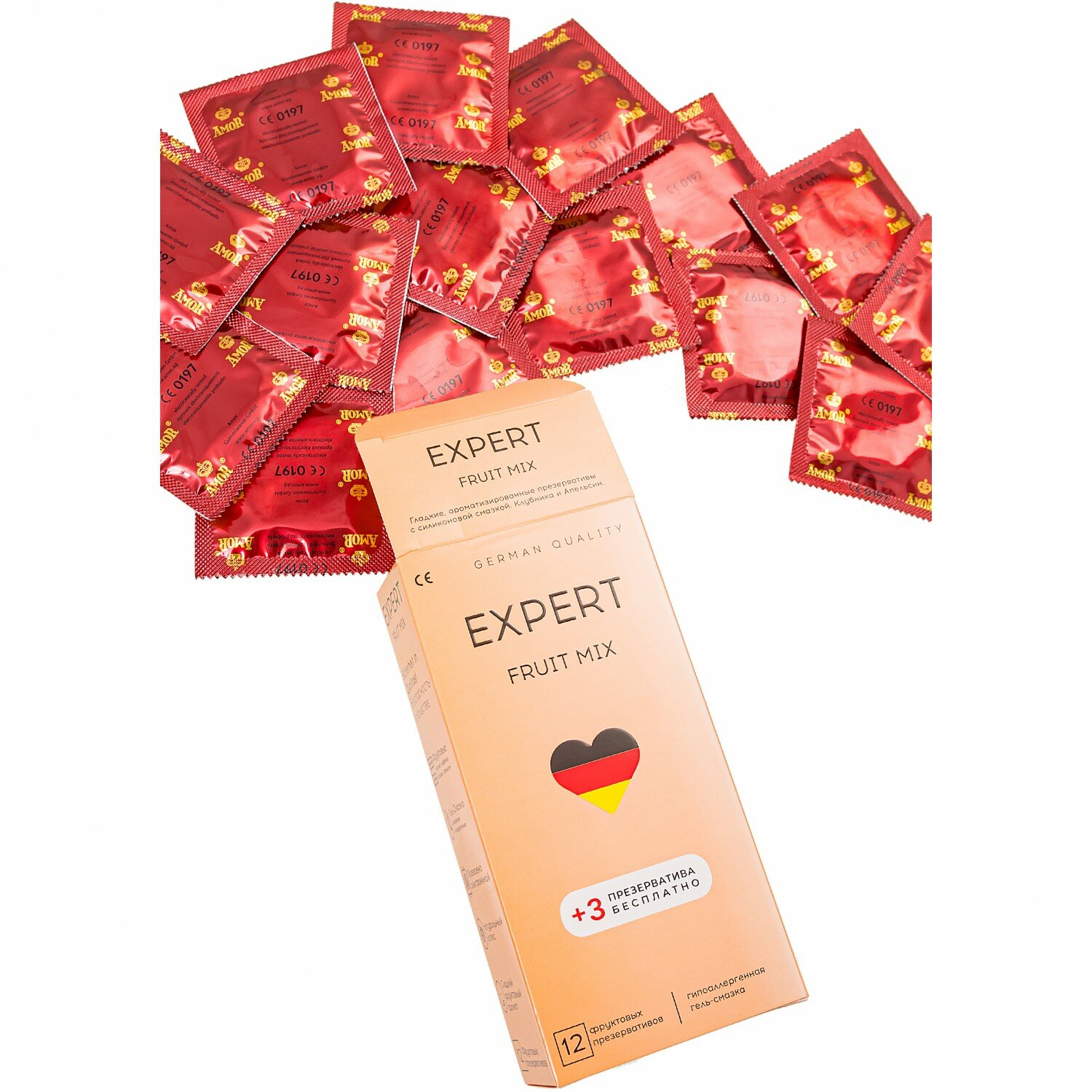 Купить Презервативы EXPERT FRUIT MIX N12+3 Фруктовый микс со вкусом клубники и апельсина, гладкие, силиконовая смазка