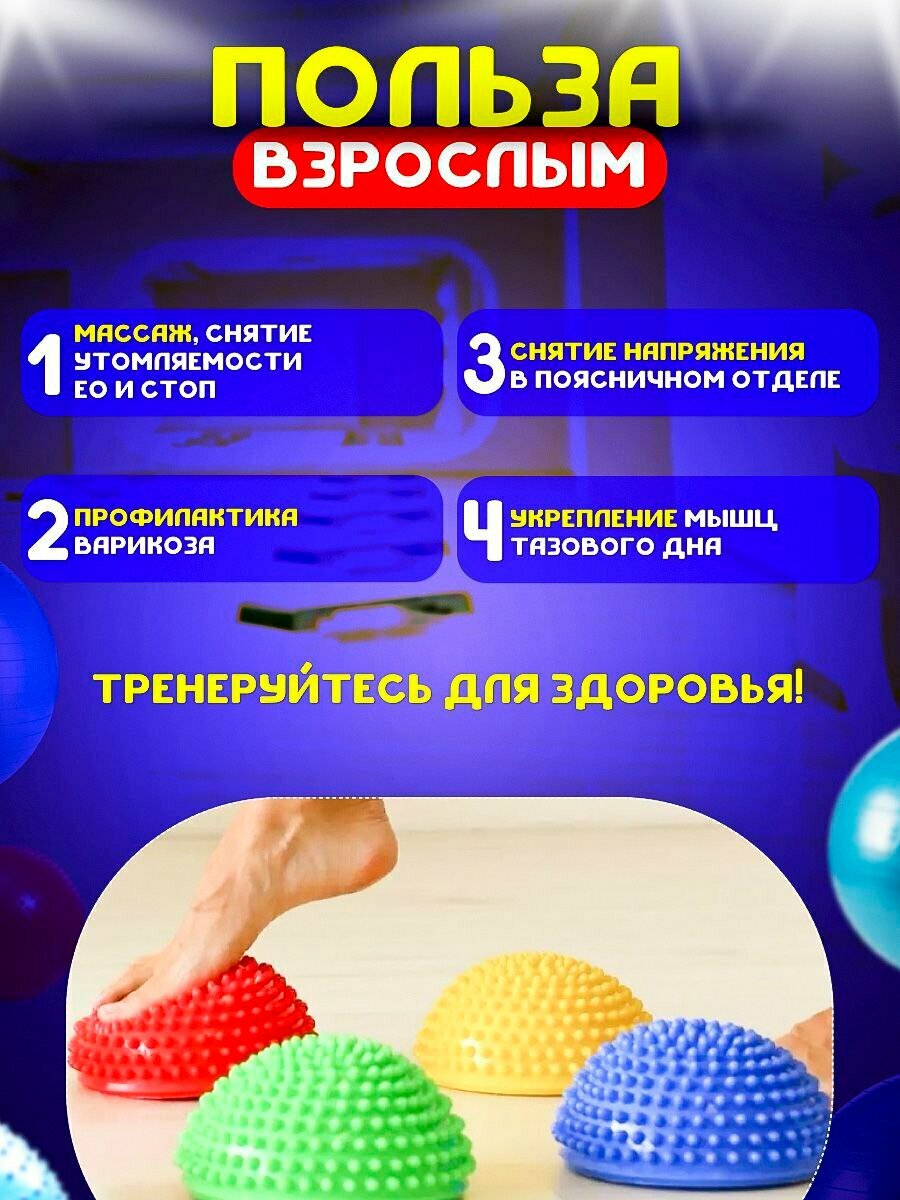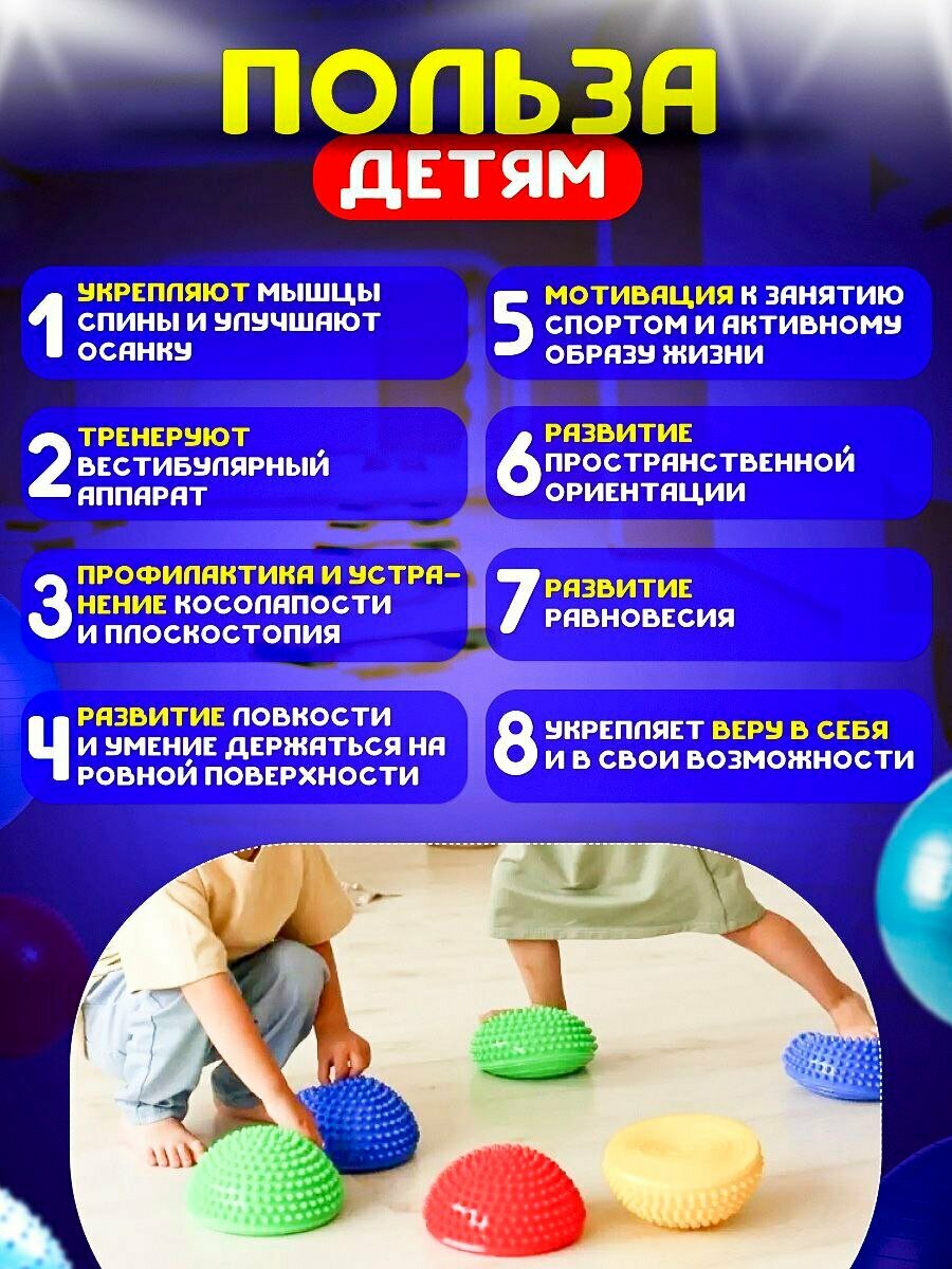Полусферы подушки кочки балансировочные массажные шипы балансиры для детей и спорта с насосом 3 шт. интересное: