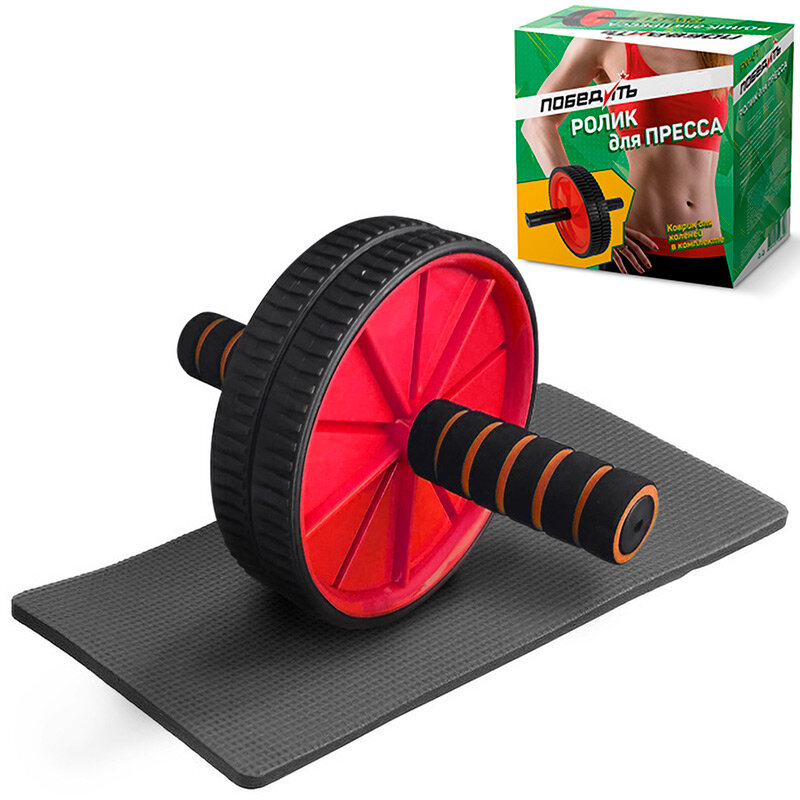 ONLYTOP Ролик для пресса ONLYTOP, 2 колеса, с ковриком, цвета микс