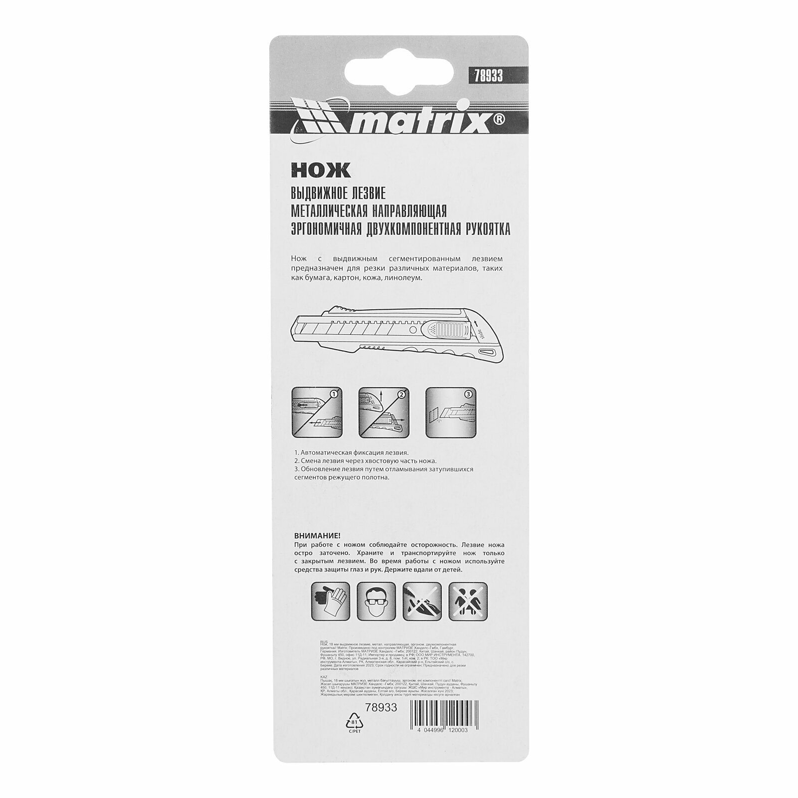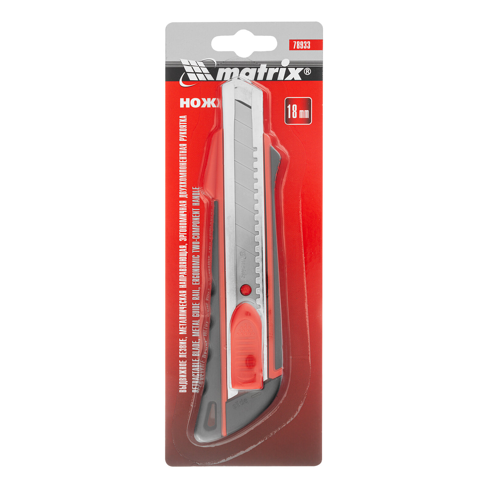 Нож, 18 мм, выдвижное лезвие металлическая направляющая, эргономичная двухкомпонентная рукоятка Matrix интересное: