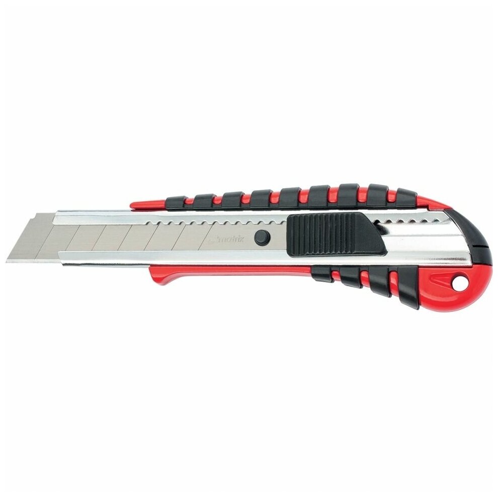 Купить Нож, 18 мм, выдвижное лезвие металлическая направляющая, эргономичная двухкомпонентная рукоятка Matrix