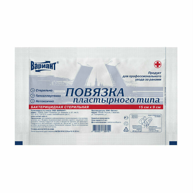 Ниже Вы можете прочитать отзывы на Повязка бактерицидная пластырного типа стерильная Вариант 9х15см 1 шт, ознакомится с подробными характеристиками, посмотреть интересные обзоры и фотографии на Повязка бактерицидная пластырного типа стерильная Вариант 9х15см 1 шт.