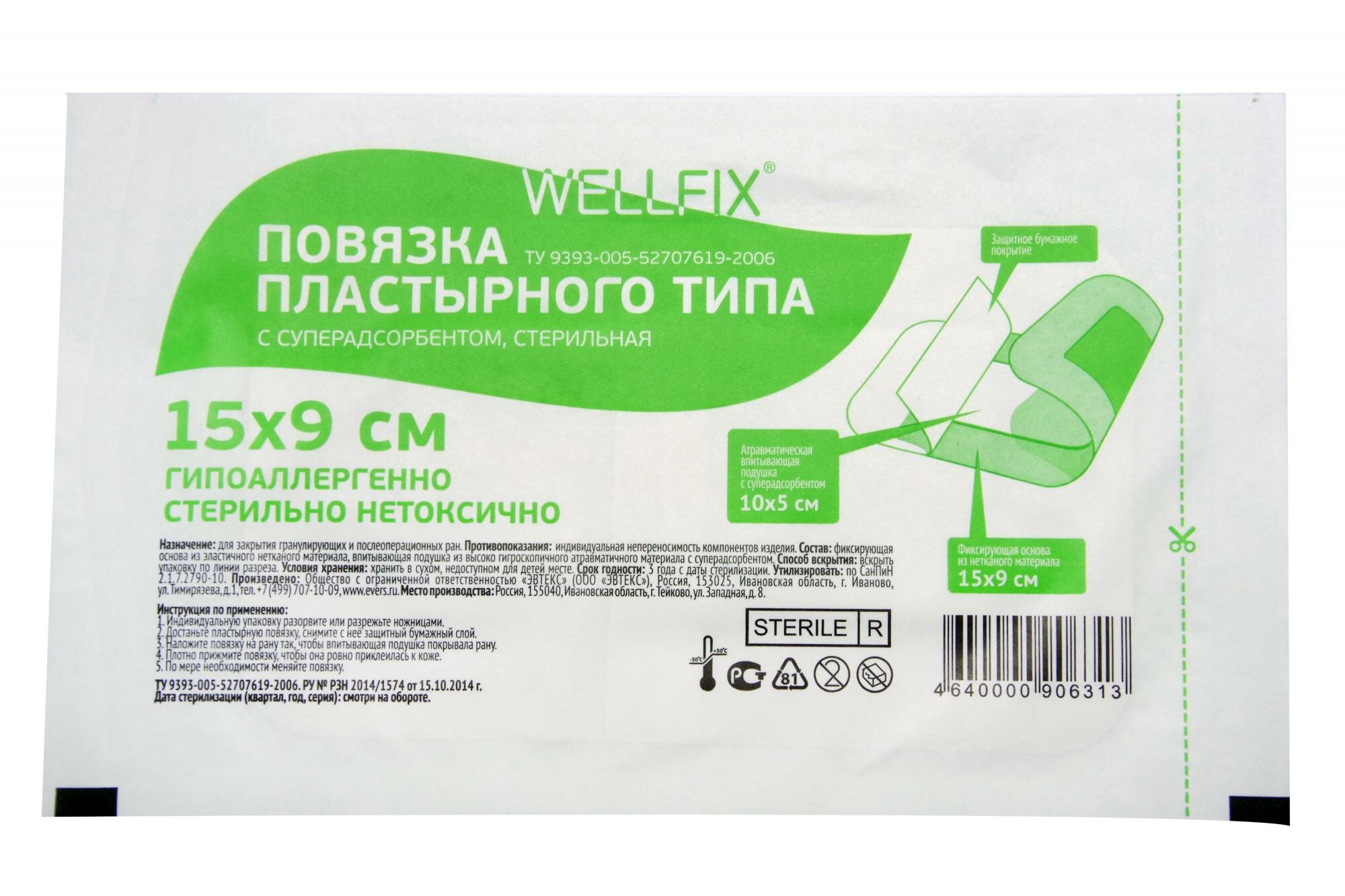 Wellfix / Веллфикс - повязка пластырная, с суперадсорбентом, стерильная, 9x15 см интересное:
