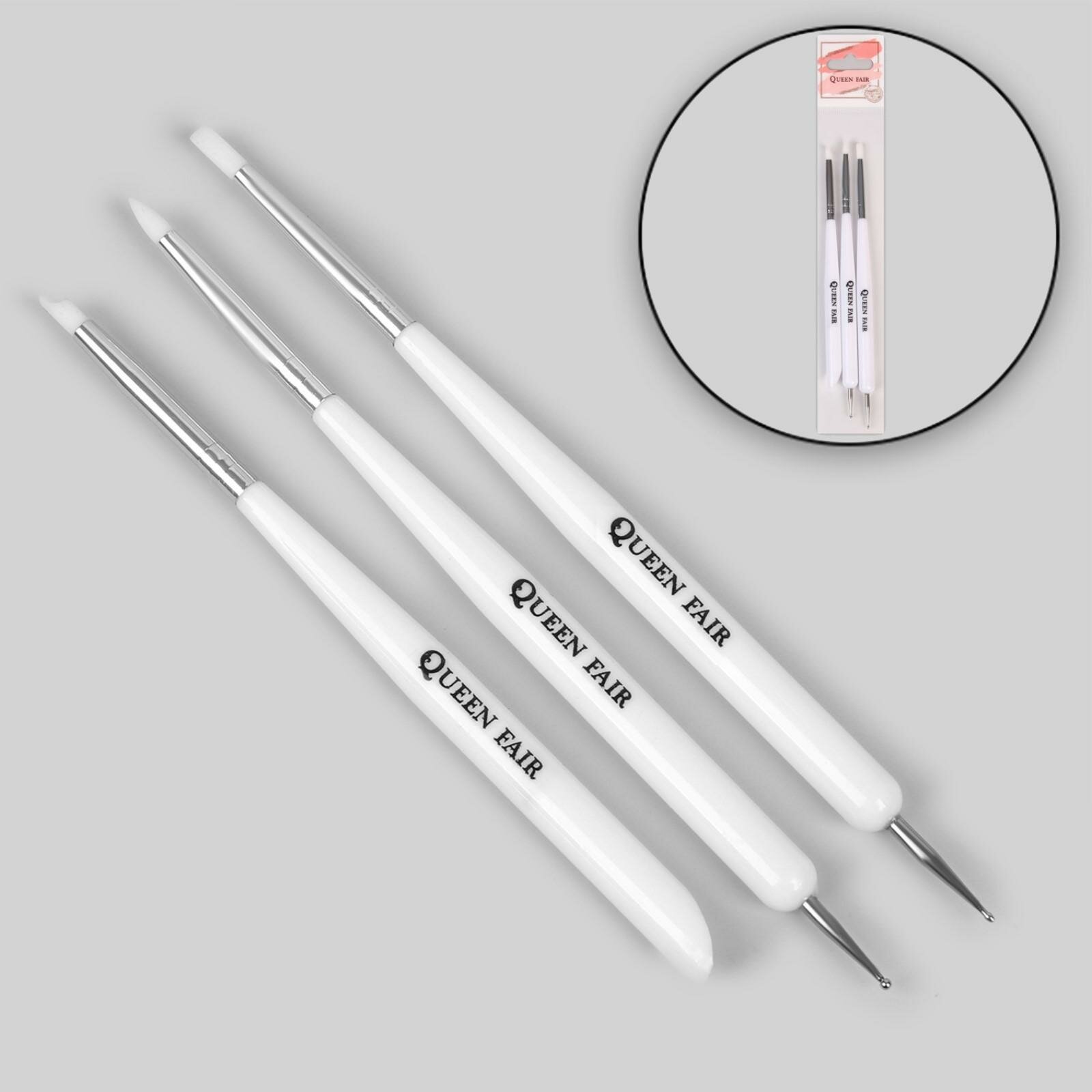 Купить Набор для наращивания и дизайна ногтей: силиконовая кисть - дотс 2 шт, силиконовая кисть - пушер, цвет белый