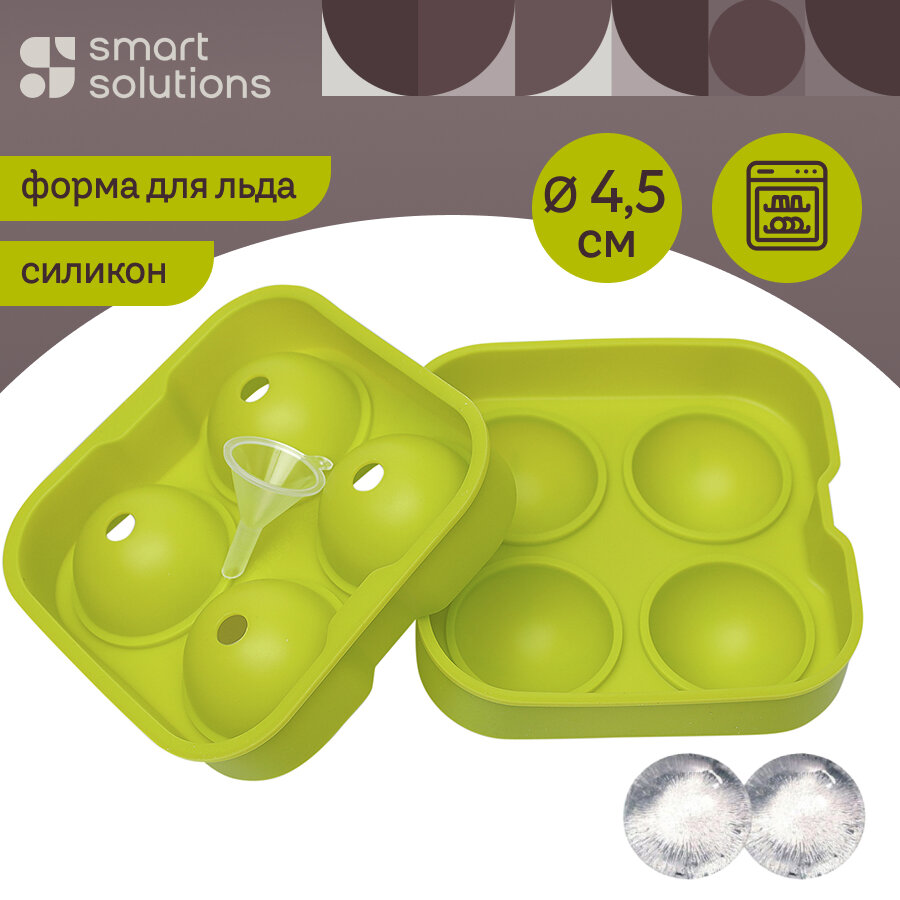 Форма для льда Freeze силиконовая 4 ячейки шар Smart Solutions SS000087 интересное: