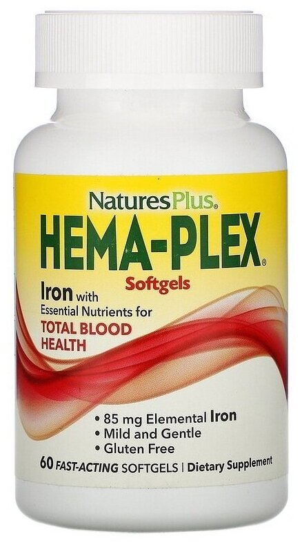 Nature's Plus, Hema-Plex, 60 софт гелей 20 порций интересное:
