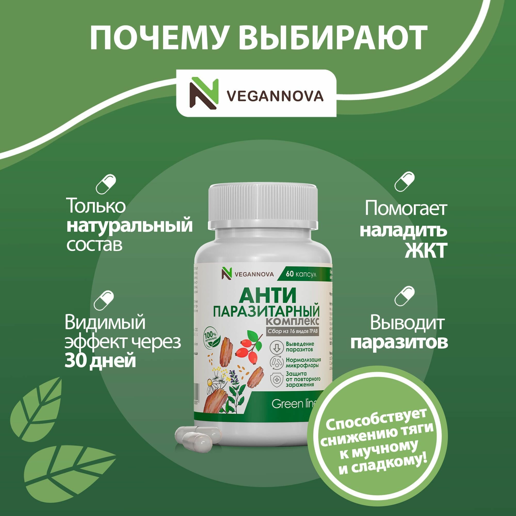 Vegannova Антипаразитарный комплекс для взрослых (сбор из 16 трав), очищение организма и кишечника, 60 капсул интересное: