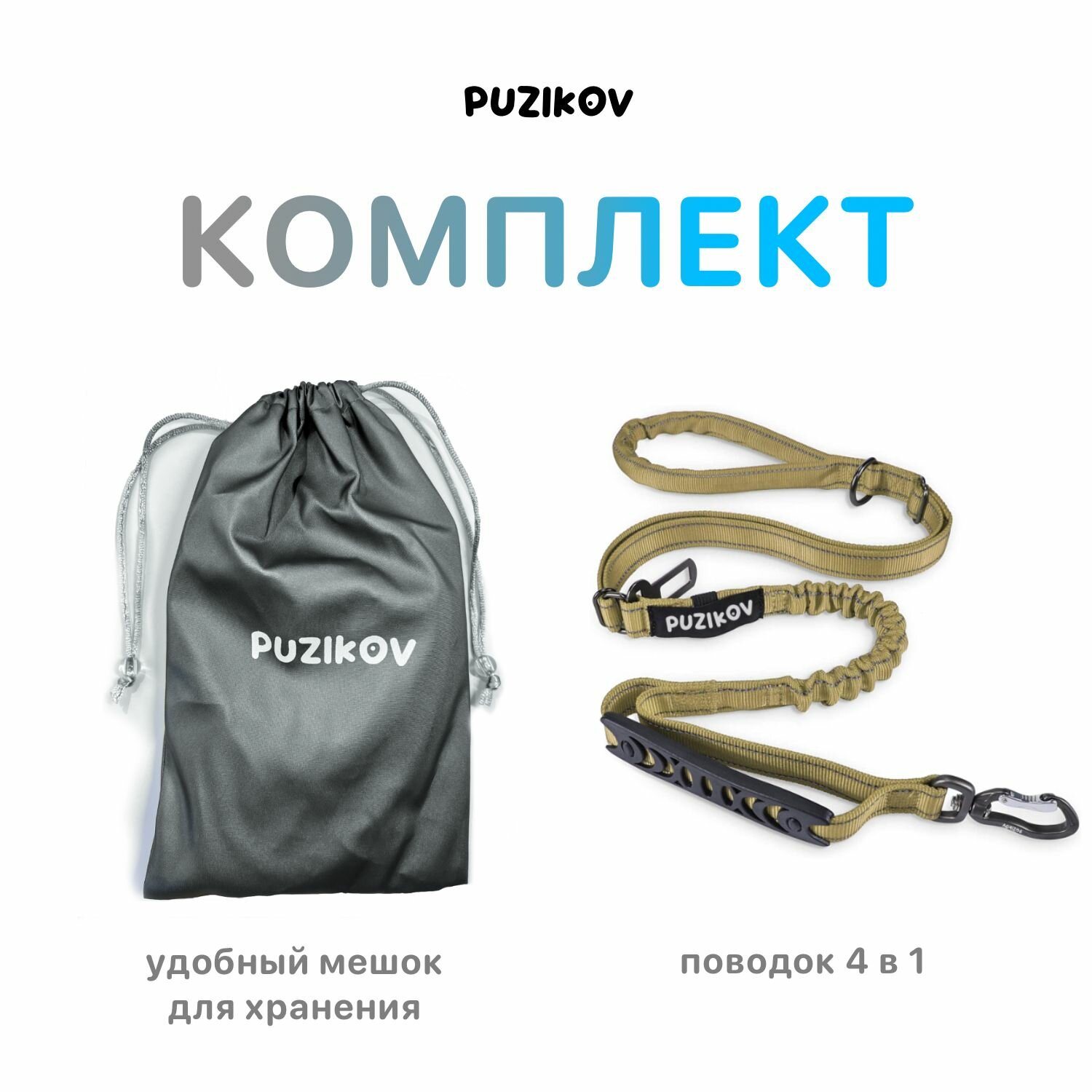 СохранитьПоводок для собак Антирывковый с усиленным карабином 4 в 1 для средних и крупных пород, 1,2-1,5 метра, песочный, PUZIKOV / пузиков интересное: