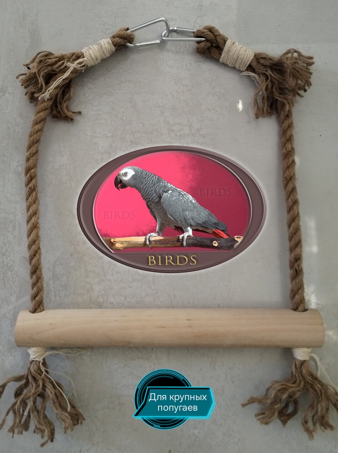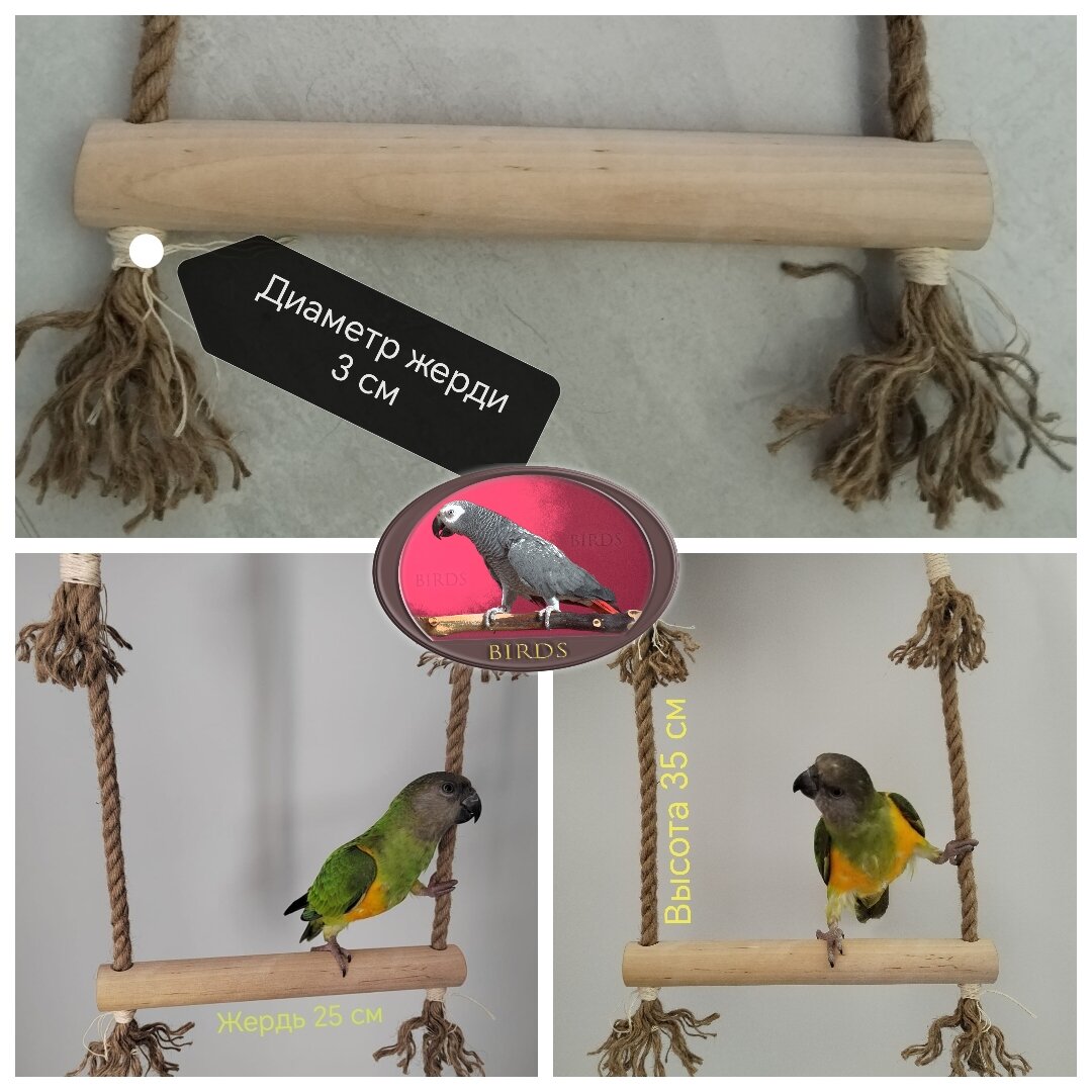 Качели для Жако и крупных попугаев из натурального дерева и каната интересное: