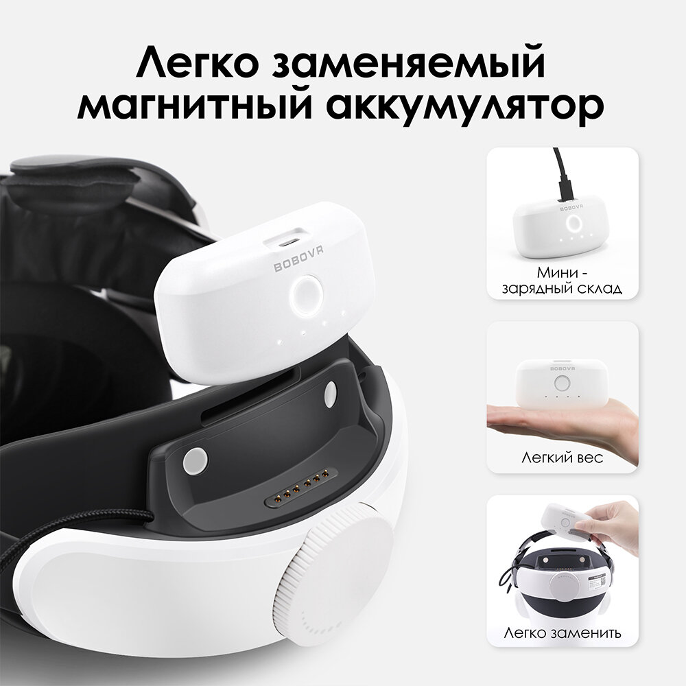 Крепление BOBOVR M3 PRO Head Strap для Meta Quest 3 с аккумулятором интересное: