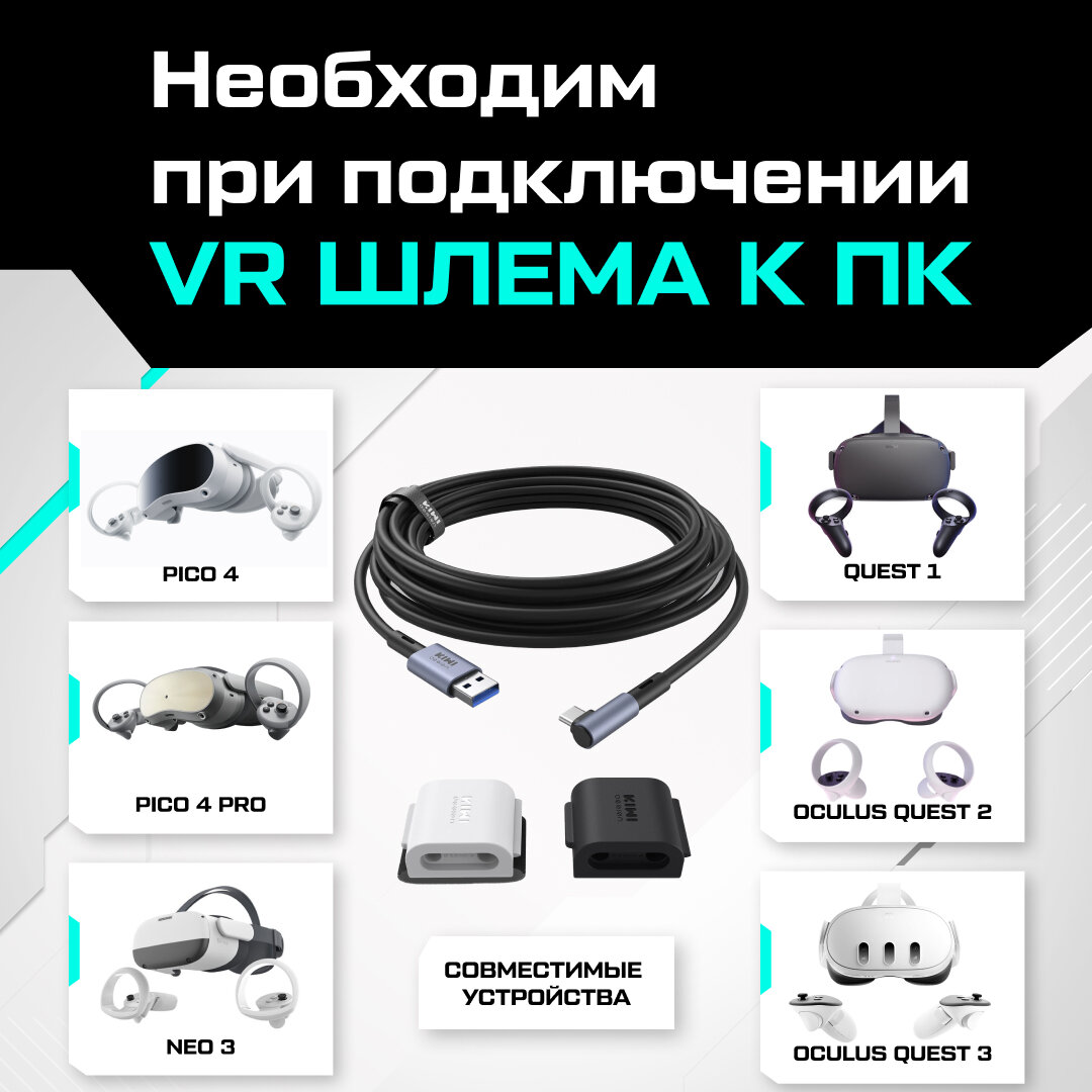 Кабель KIWI design Upgraded Oculus Link для Oculus Quest 2 / Pico 4 интересное: