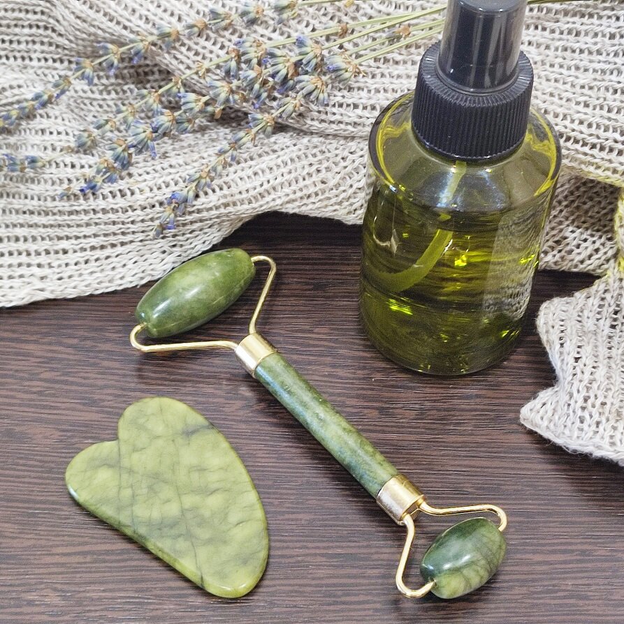 | Дополнительная информация | Массаж для лица с роликом и скребком гуаша поможет в борьбе с возрастными изменениями, сделает кожу упругой и наполнит ее светом. Массаж лица с нефритовым роллером и скребком гуаша не только способствует красоте и здоровью кожи, но и благоприятно воздействует на весь организм. Нефритовый массажер расслабляет мышцы лица; разглаживает мимические морщины и повышает эластичность кожи; нормализует микроциркуляцию и улучшает цвет лица; уменьшает темные круги и мешки под глазами; снимает отечность; улучшает состояние пор; укрепляет стенки сосудов и капилляров. Массаж также способствует лучшему впитыванию Ваших косметических средств и эффективному проникновению активов. |