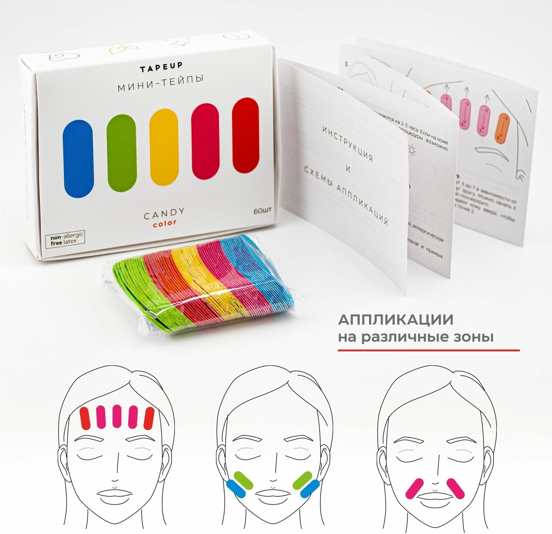 Купить TAPEUP CANDY COLOR/ Преднарезанные кинезио тейпы для лица готовые к аппликации/ против морщин и отеков
