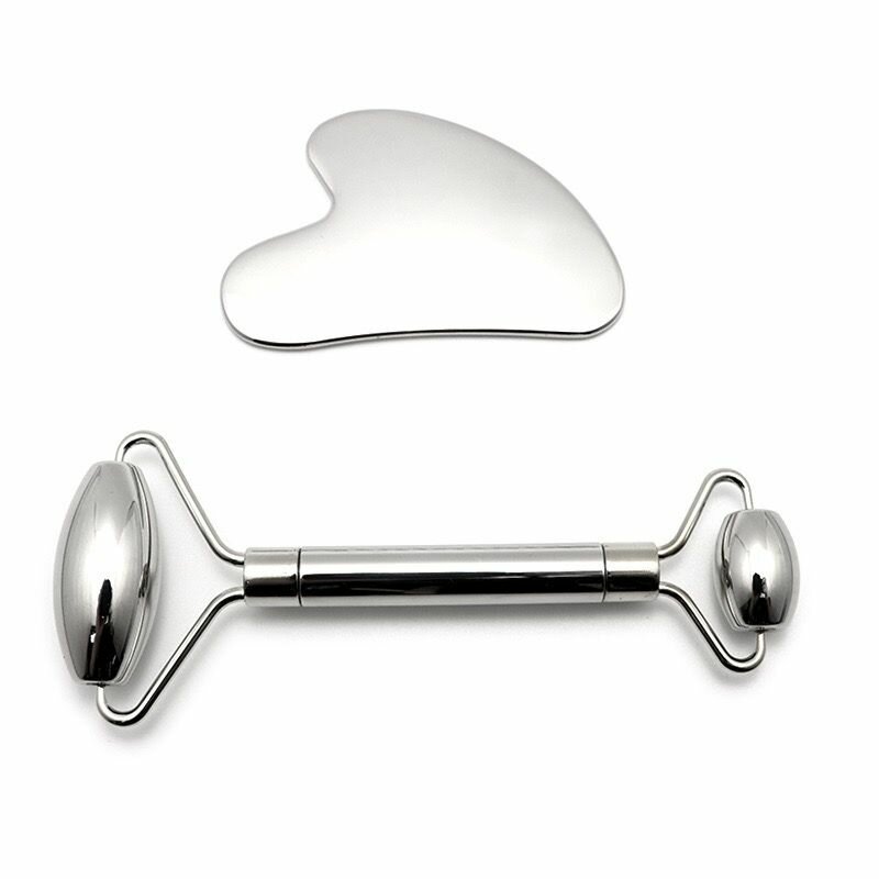 Стальной массажный набор Гуаша для лица , скребок+роллер интересное: