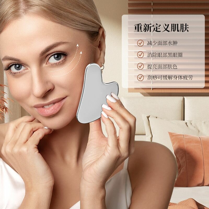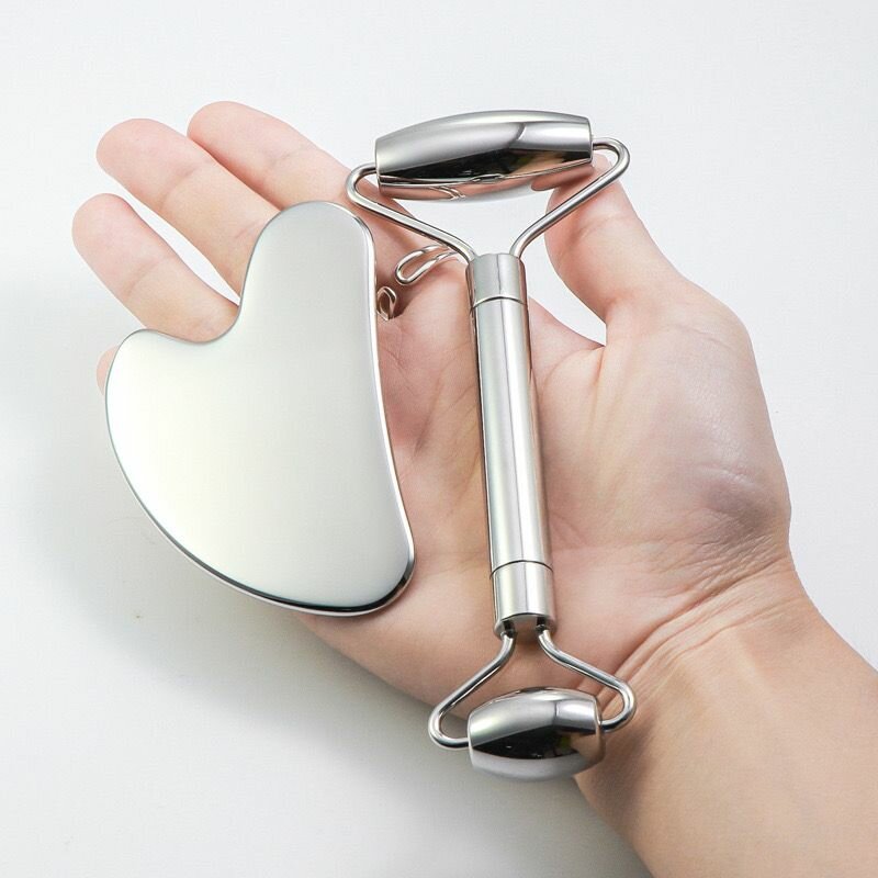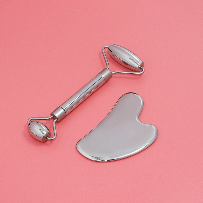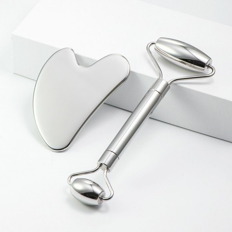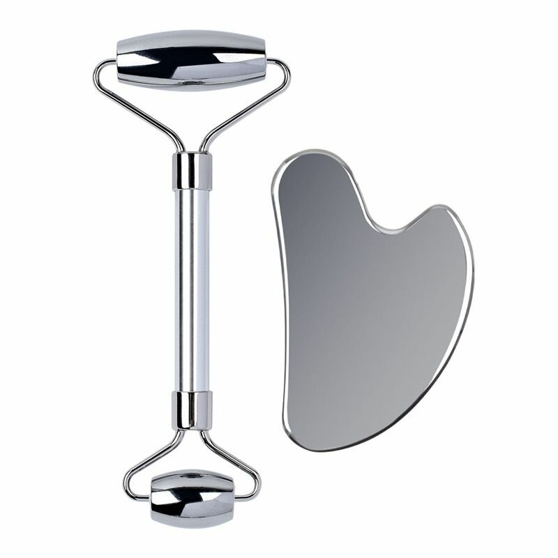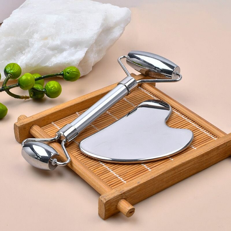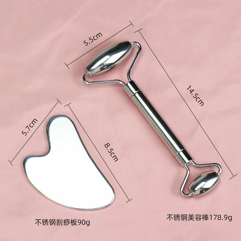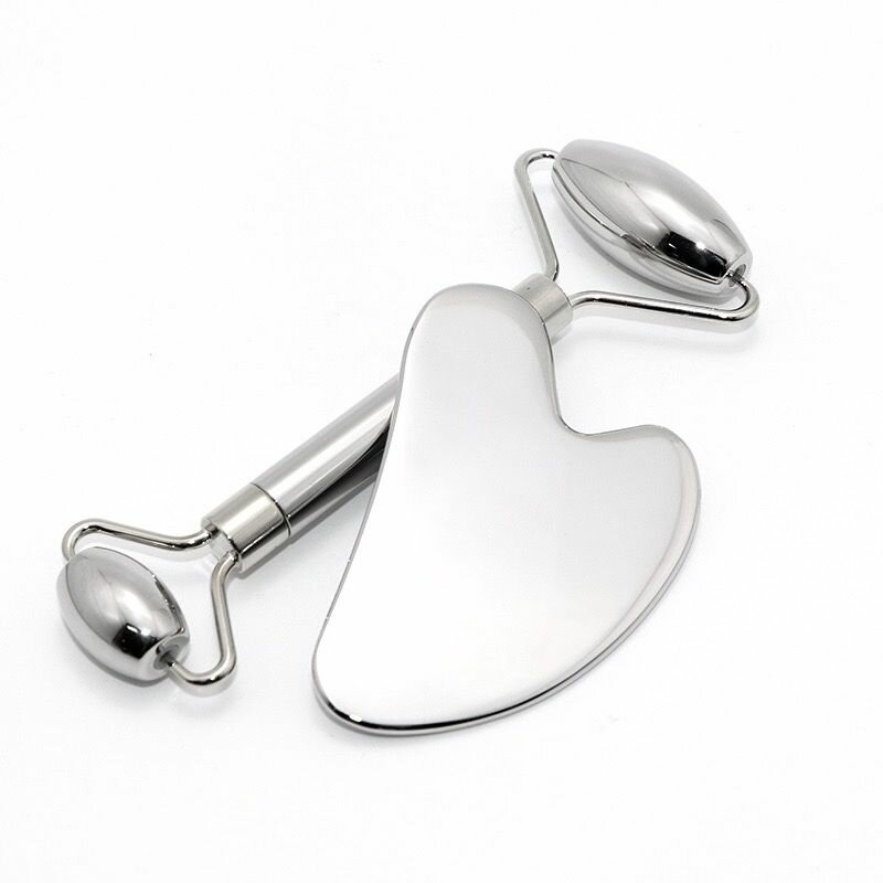 Купить Стальной массажный набор Гуаша для лица , скребок+роллер