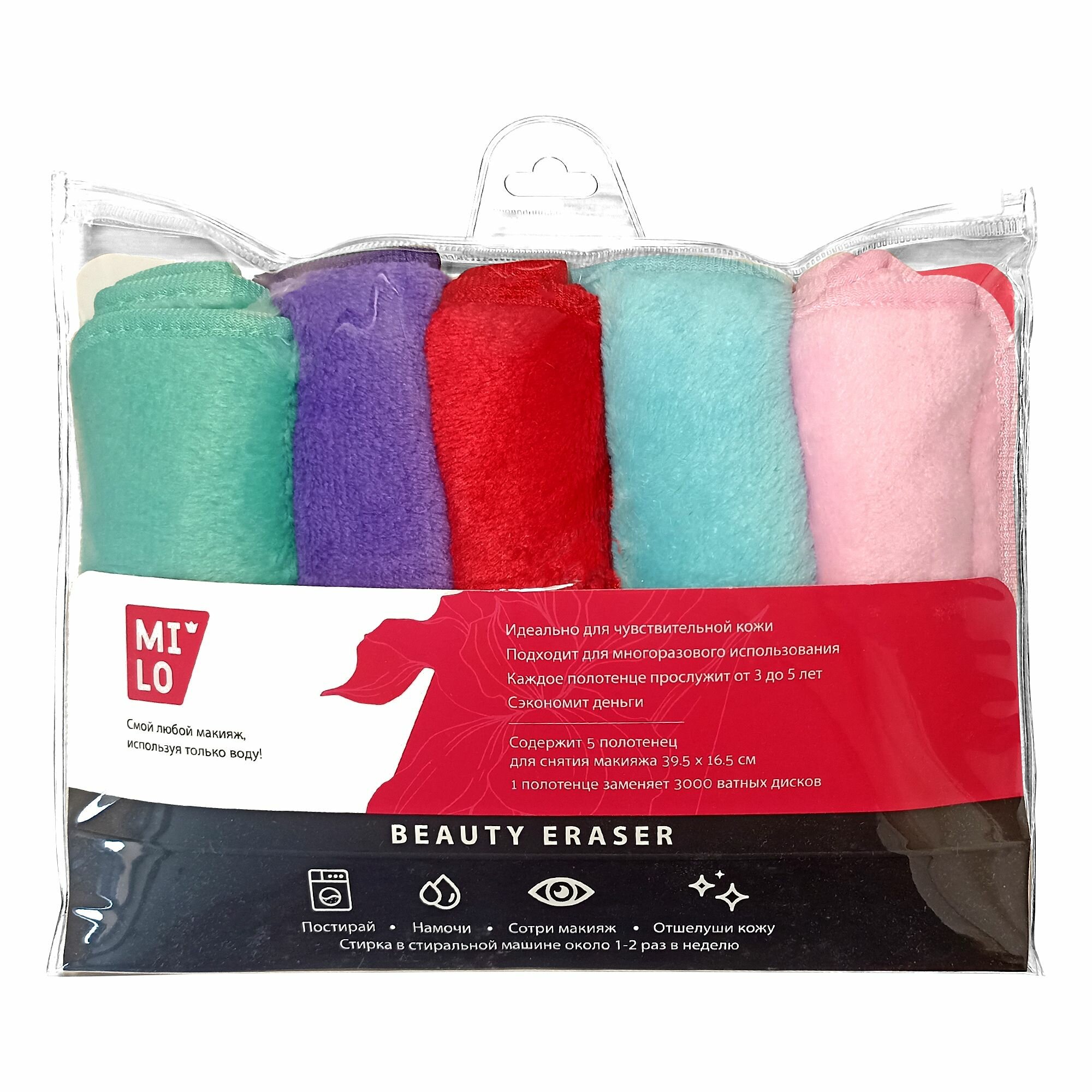 Купить Cалфетка для снятия макияжа MiLO, набор из 5 штук, многоразовая из микрофибры