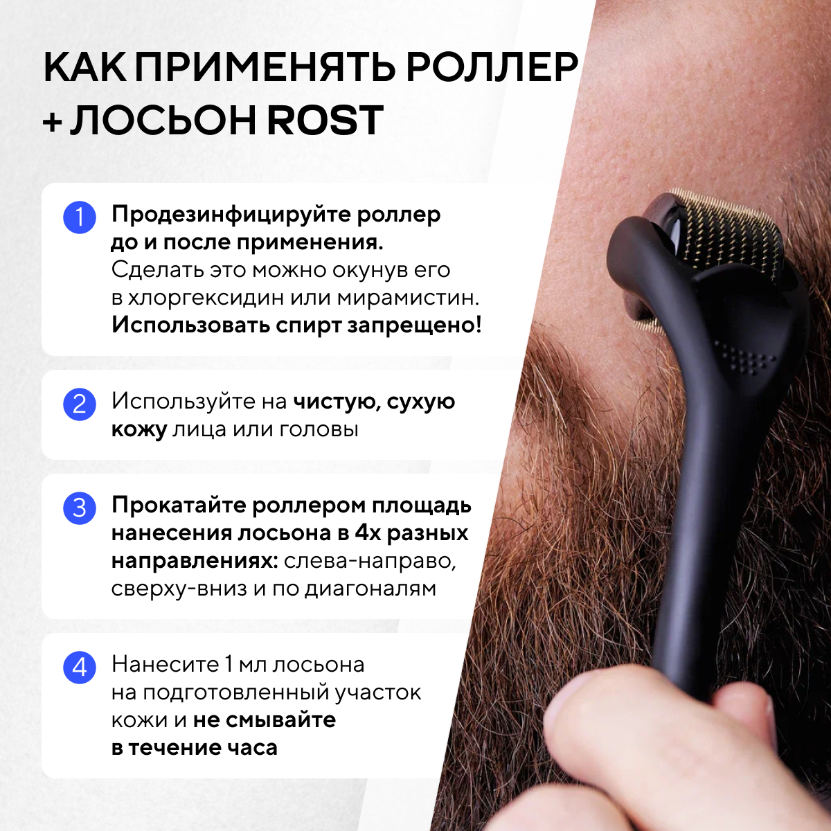 ROST Домашний мезороллер (дермароллер) 540 игл по 1мм для бороды, волос, кожи лица и головы / Ролик массажный для мезотерапии / Роллер ROST интересное: