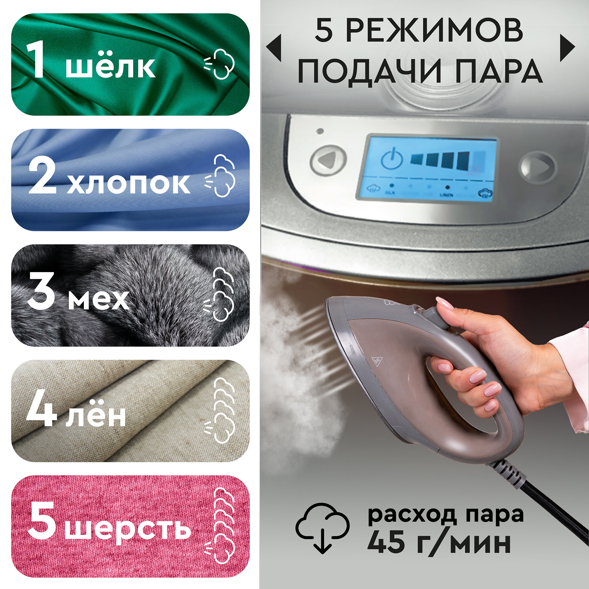 | Дополнительные функции | горизонтальное отпаривание |