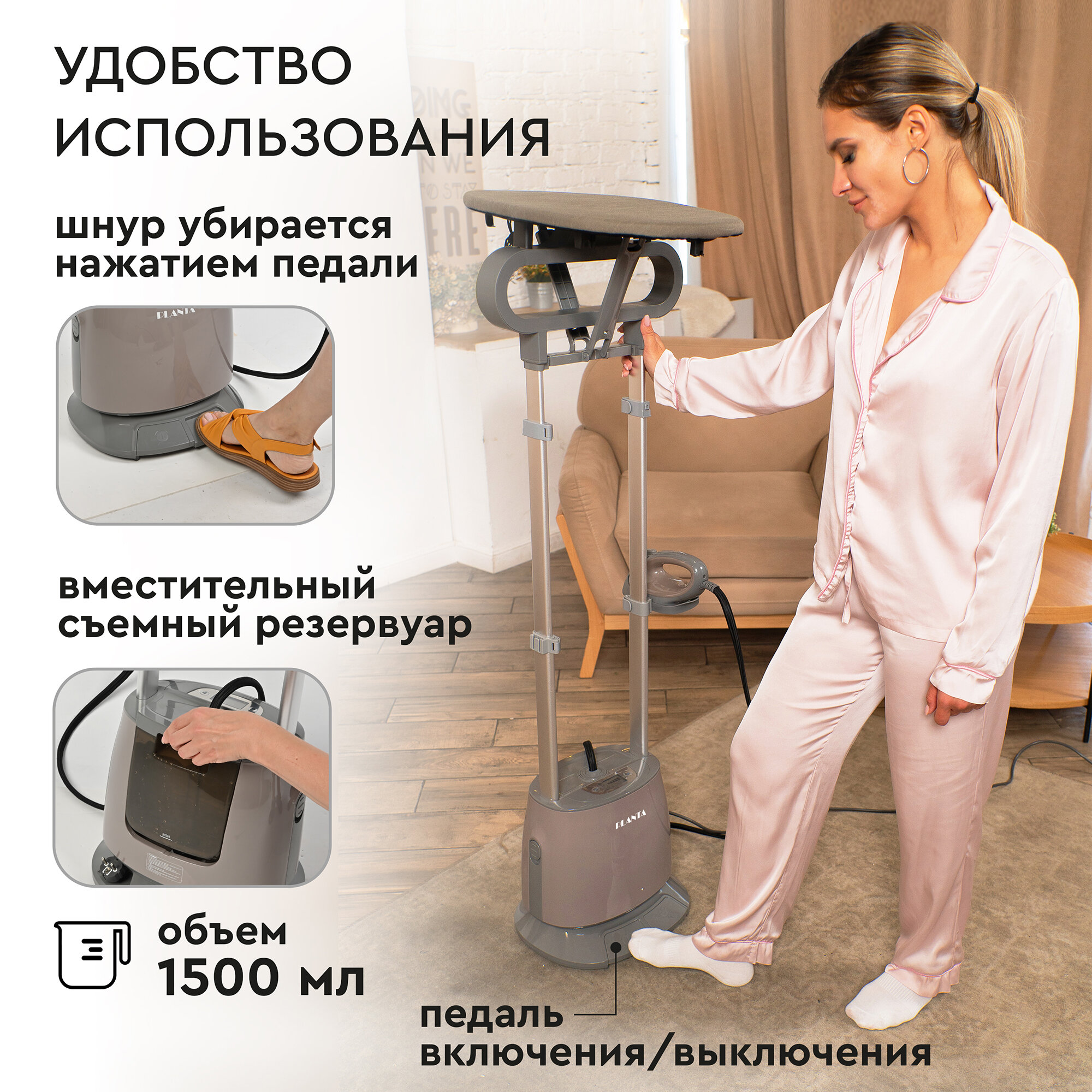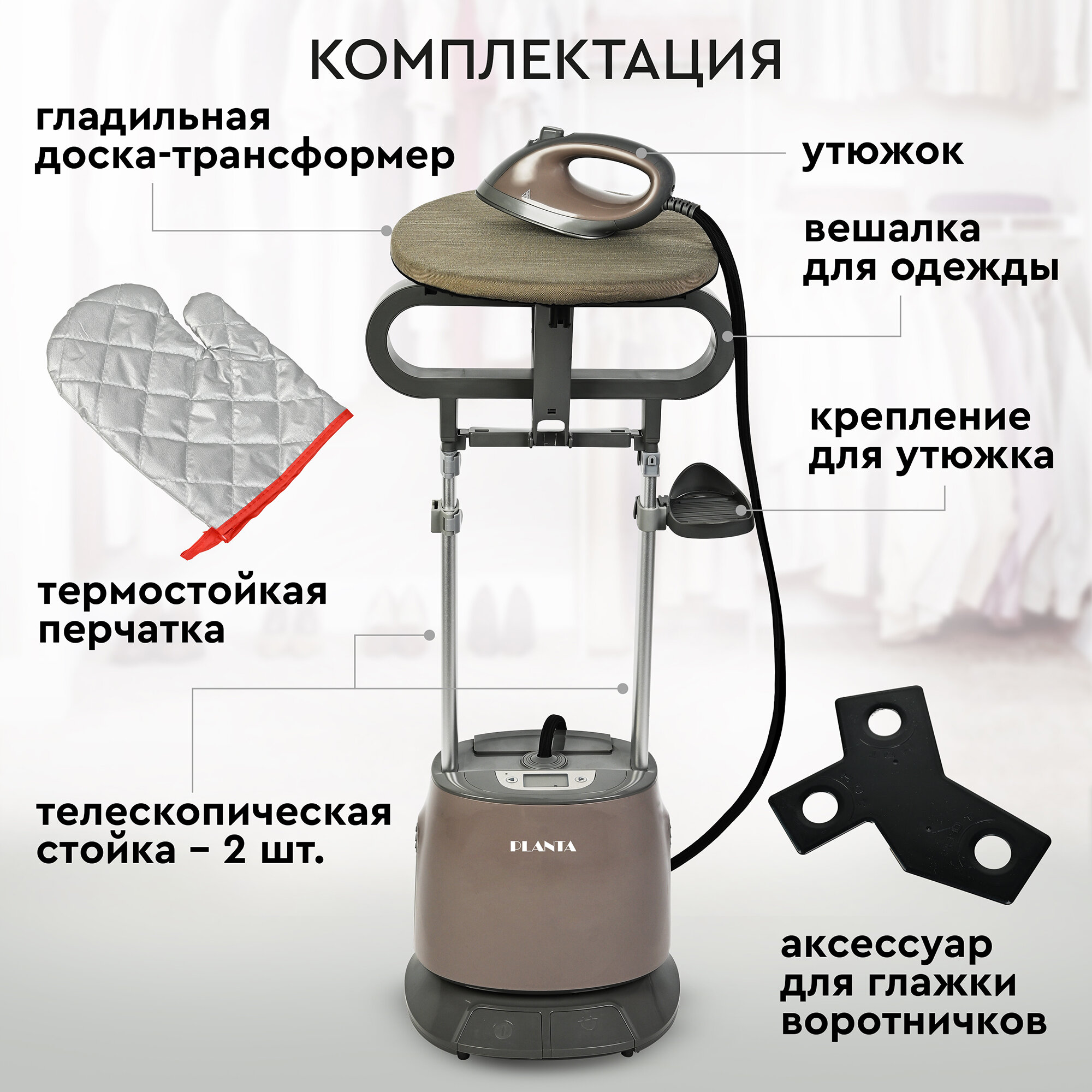 Отпариватель вертикальный 2 в 1 для одежды, мебели и штор PLANTA PLS-V100, 2180 Вт, сухая глажка
