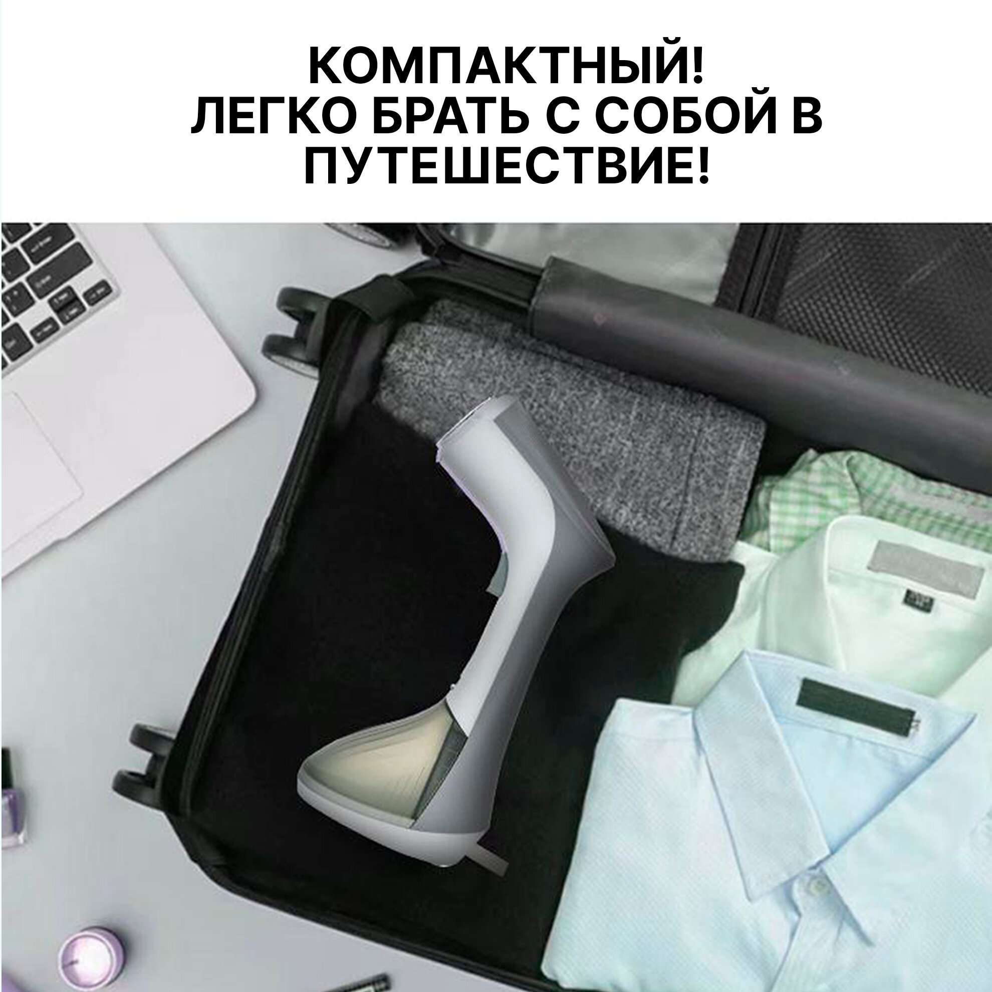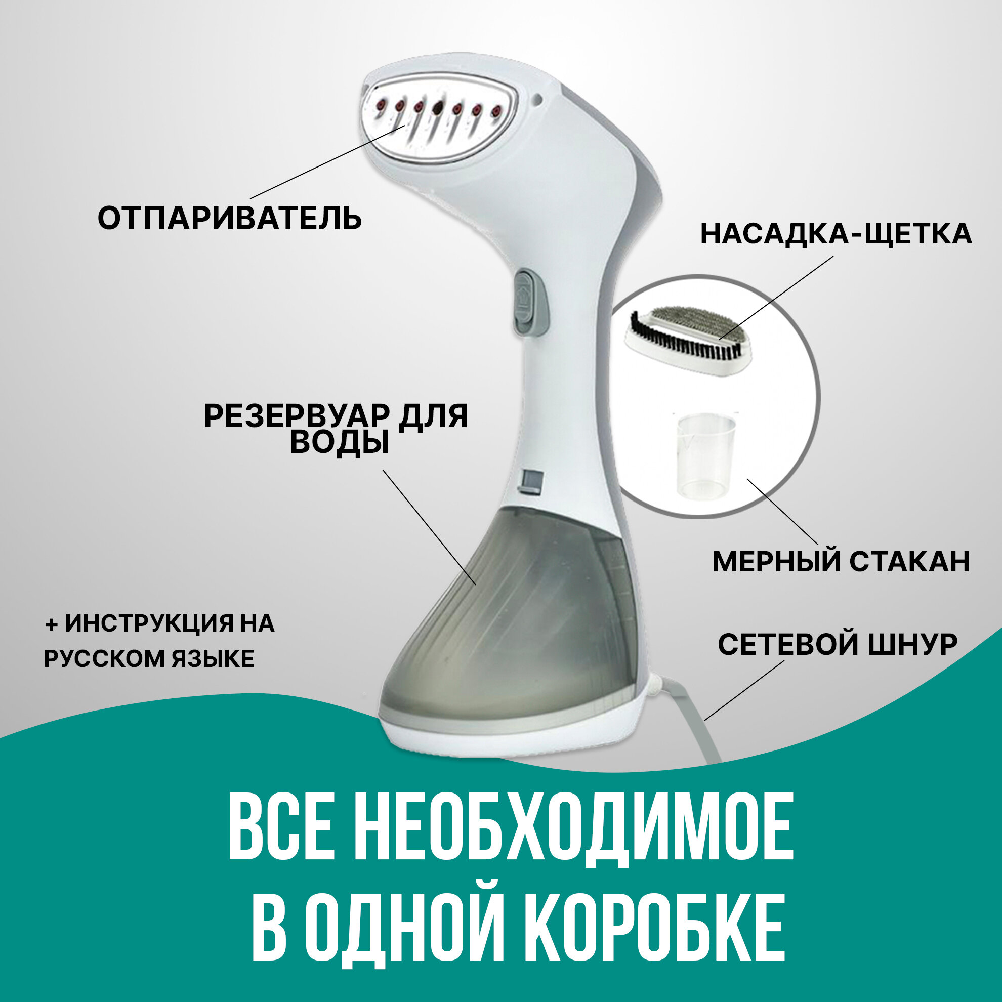 Ручной отпариватель для одежды, дорожный, с насадкой щетка, щеткой белый, парогенератор для вещей, паровой, электрический, для дома