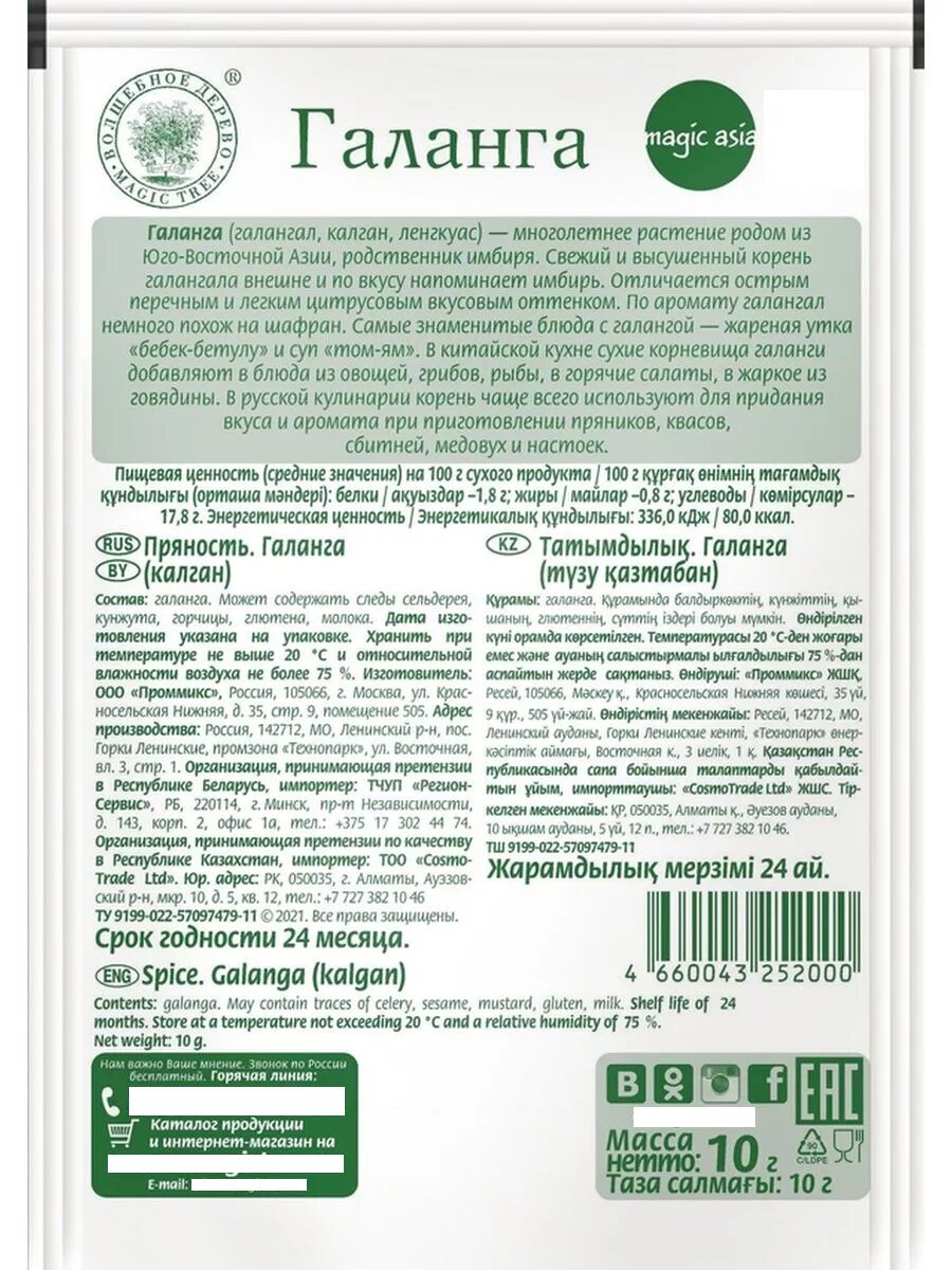 | Состав набора | Галанга (сиамский имбирь), лемонграсс (лимонное сорго), кафрский лайм (листья) |