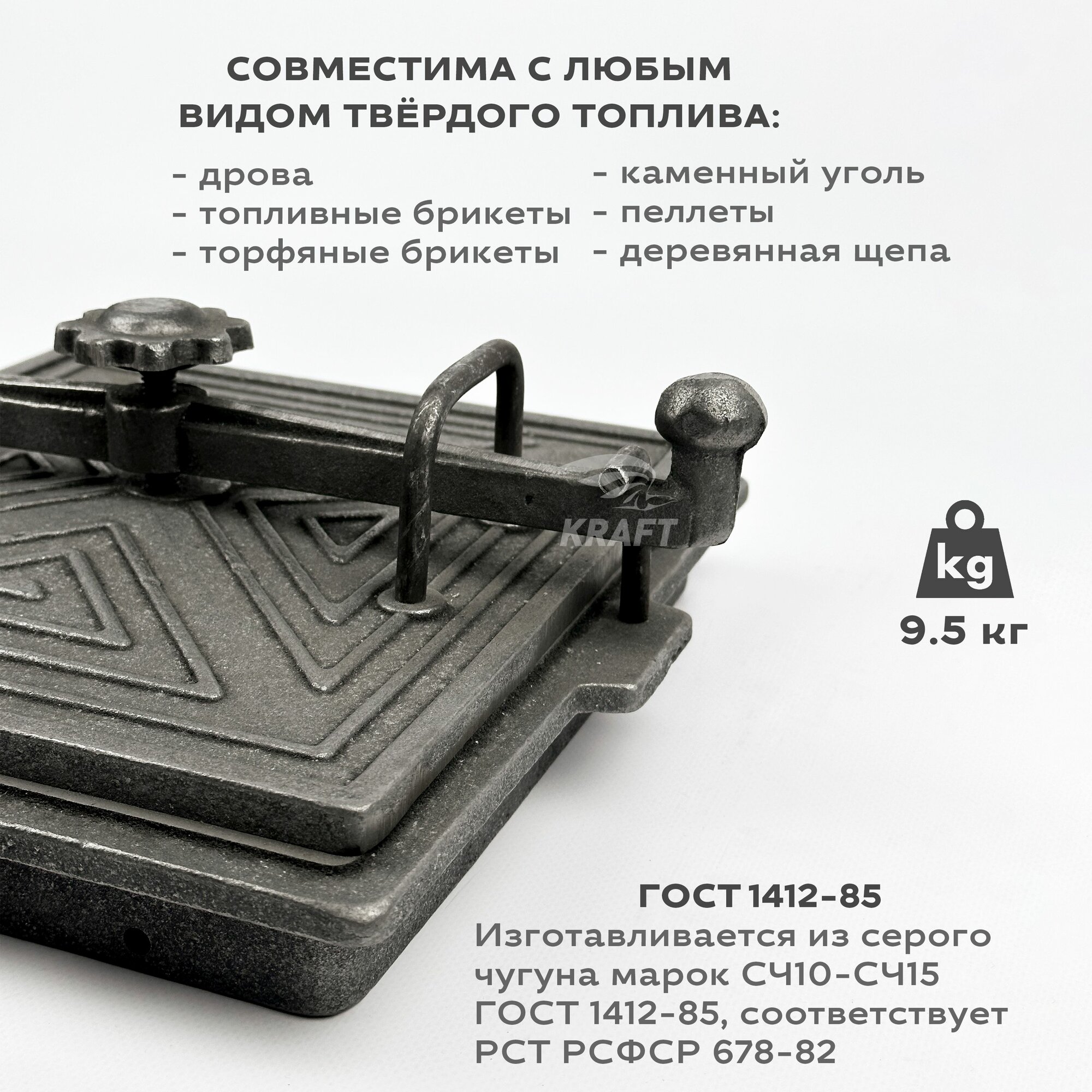 Дверка каминная топочная печная чугунная ДТК-2 450х326 мм размер под закладку 390х285 мм