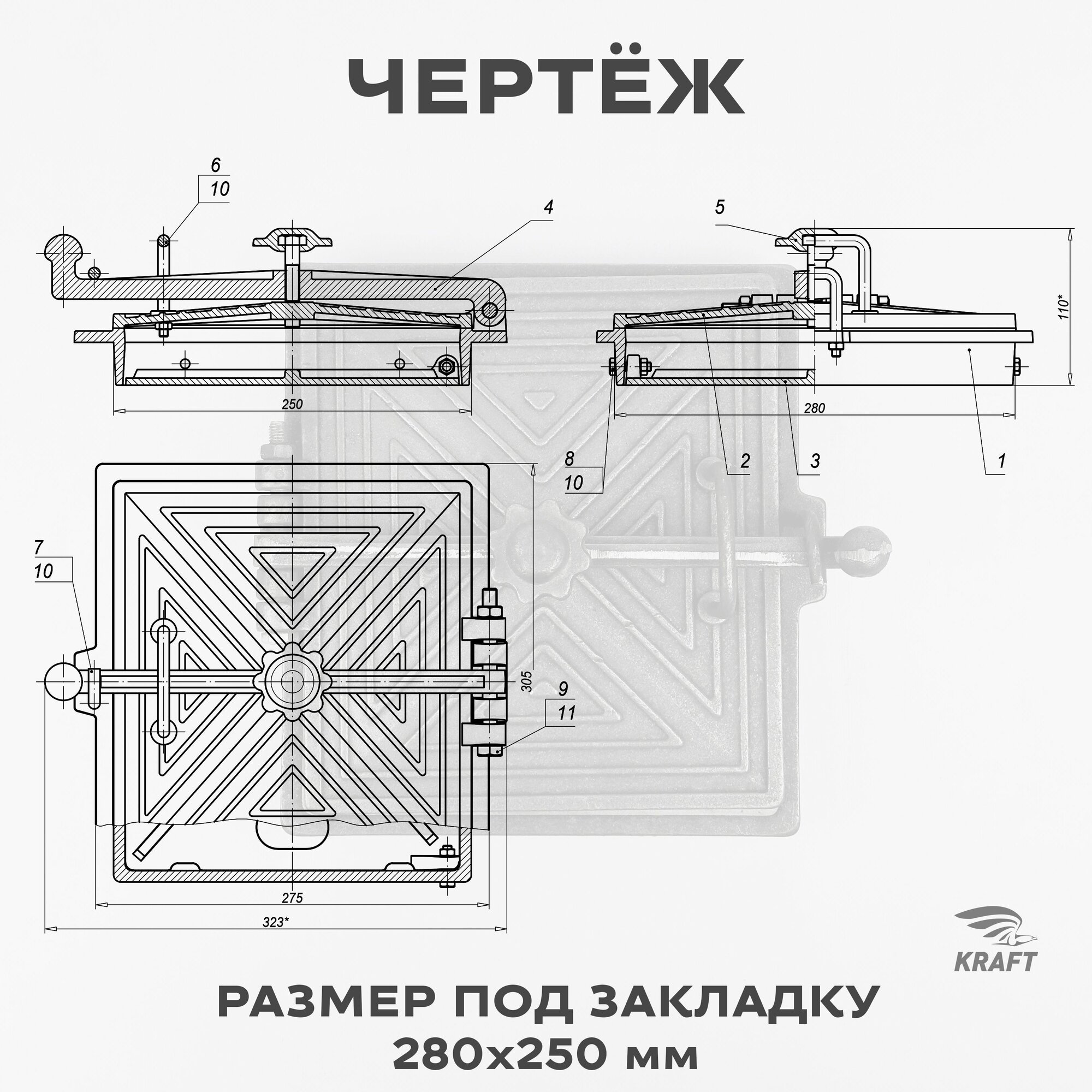 СохранитьДверка топочная печная ДТУ-2 323х305 мм из серого чугуна с теплоотражателем, установочный размер: 250x280 мм интересное: