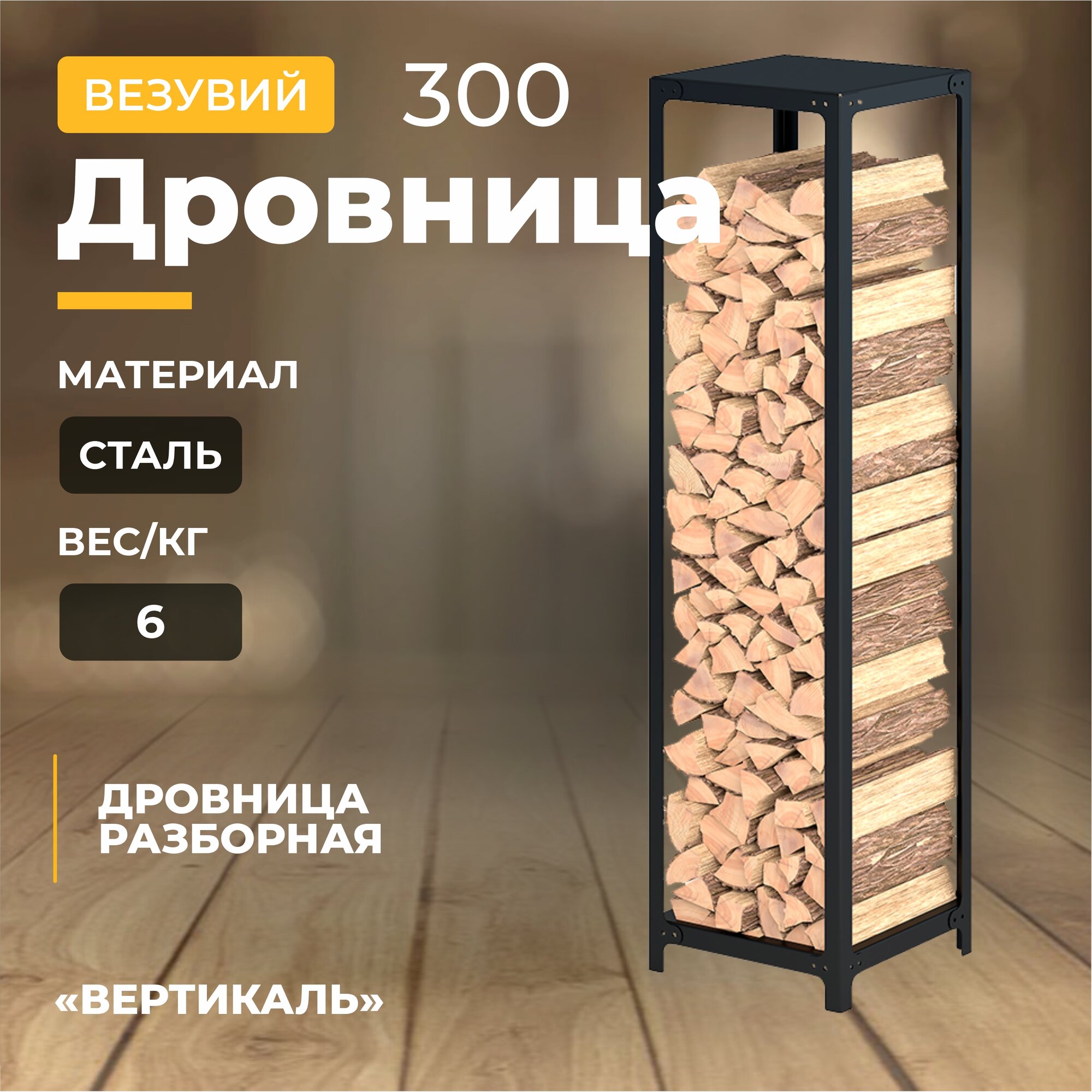 Дровница "Везувий вертикаль 300", разборная, черная, 115х30х30см, сталь, хай-тек