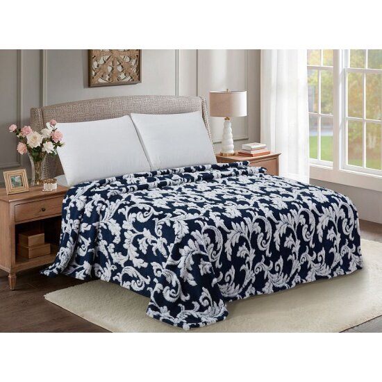 Плед Mirabella, орнамент, синий ; Размер: Евро