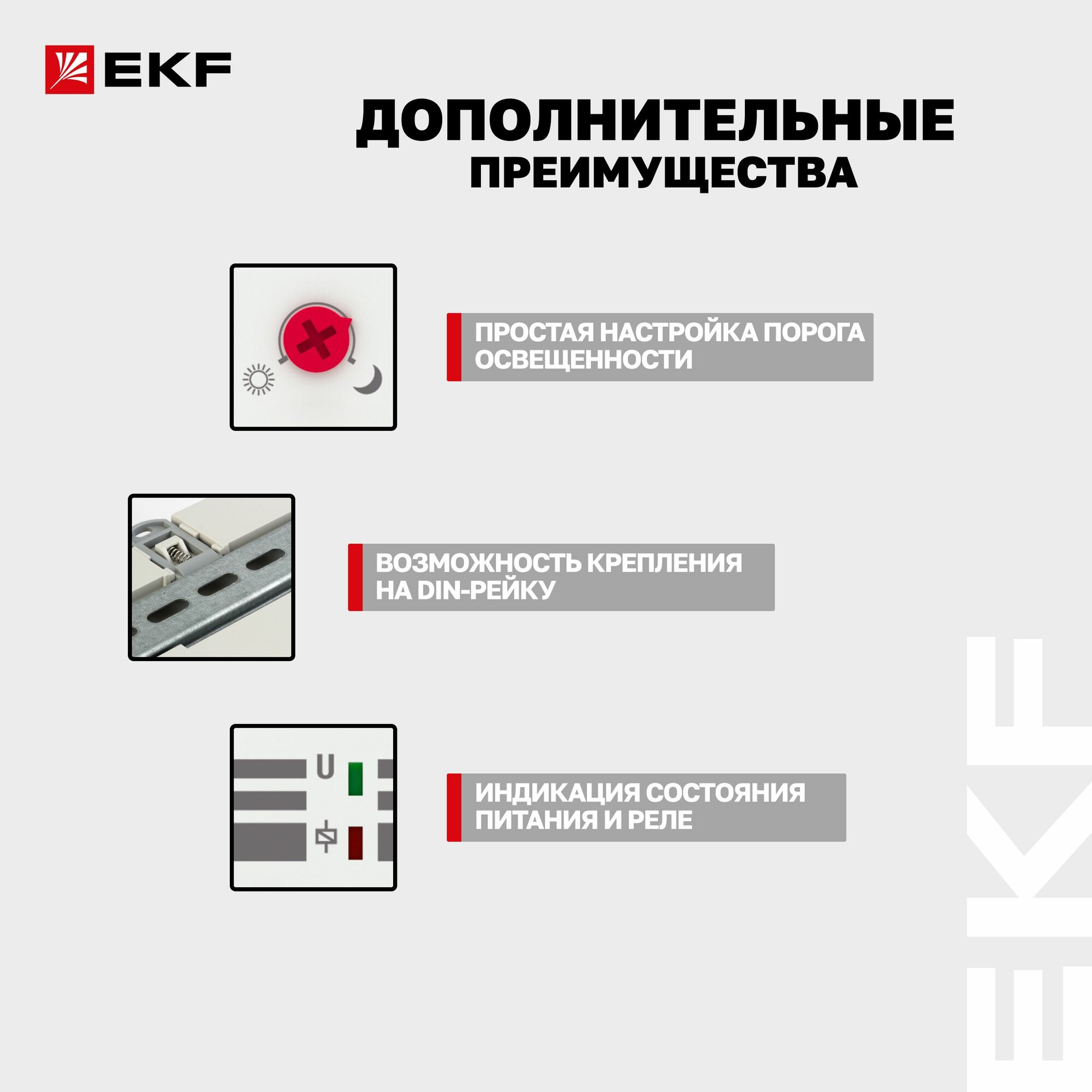 Фотореле на DIN-рейку с выносным датчиком (ФР) 2-100Лк 25А 3000Вт EKF PROxima интересное: