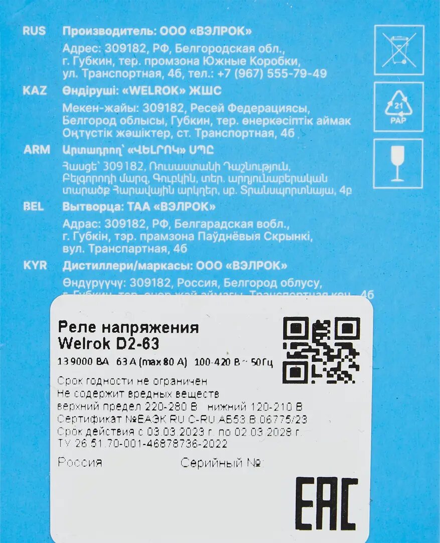 Welrok D2-63 реле напряжения 63 А (max 80 A) 13 900 ВА интересное: