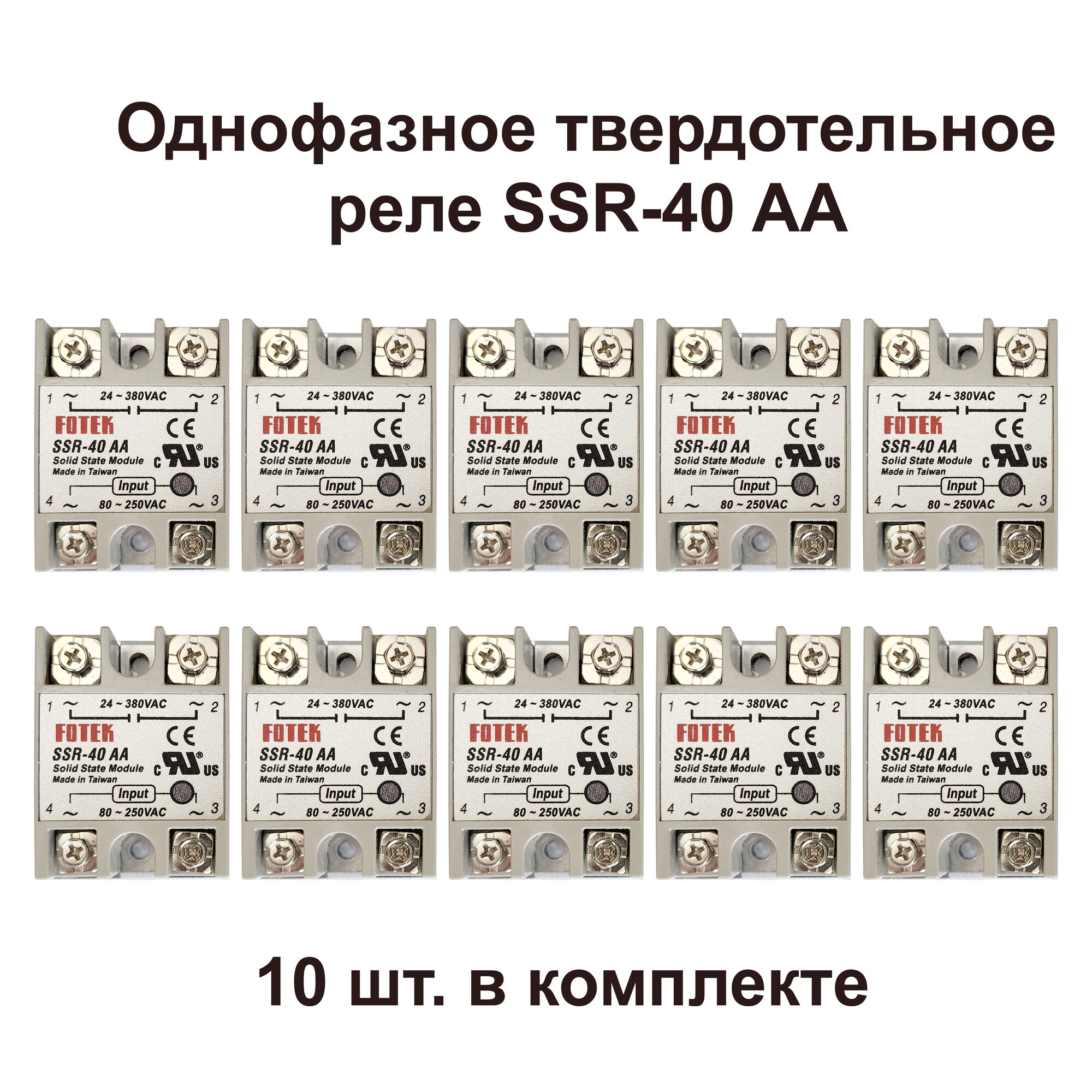 Однофазное твердотельное реле SSR-40 AA, 24-380 В (AC), 10 штук, FOTEK интересное: