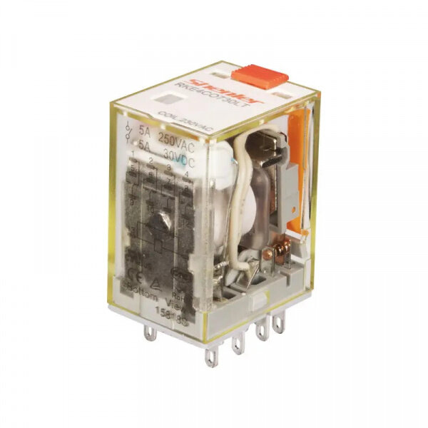 RKE4CO220LT Реле 4CO, 5A(250VAC/30VDC), 220VDC, мех. индикация, тест-кнопка с блокировкой, LED (аналог RXM4AB1MD)