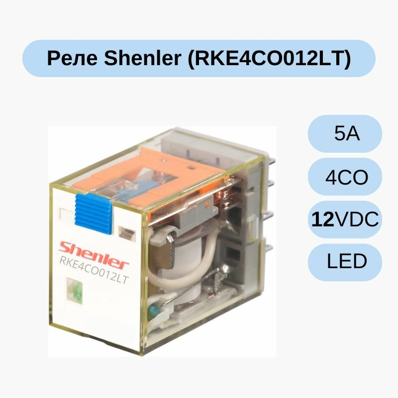 Реле Shenler RKE4CO012LT, 4CO, 5A(250VAC/30VDC), 12VDC, мех. индикация, тест-кнопка с блокировкой, LED