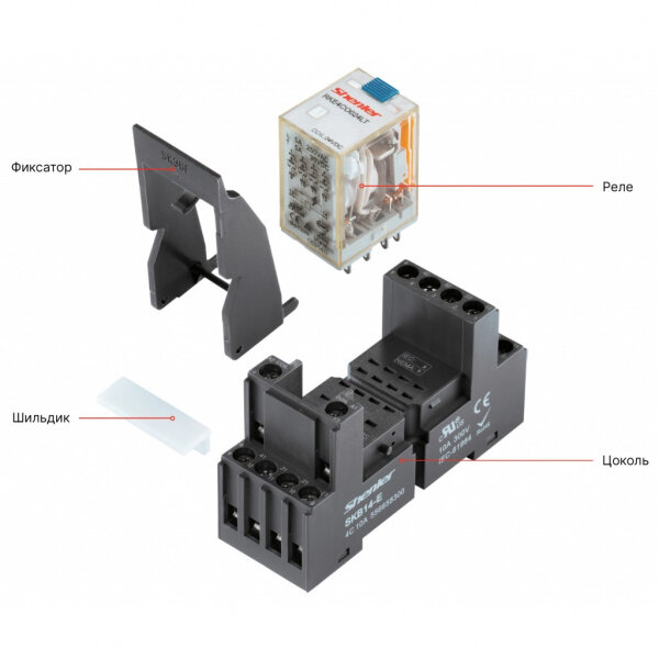 Реле Shenler RKE4CO024LT, 4CO, 5A(250VAC/30VDC), 24VDC, мех. индикация, тест-кнопка с блокировкой, LED