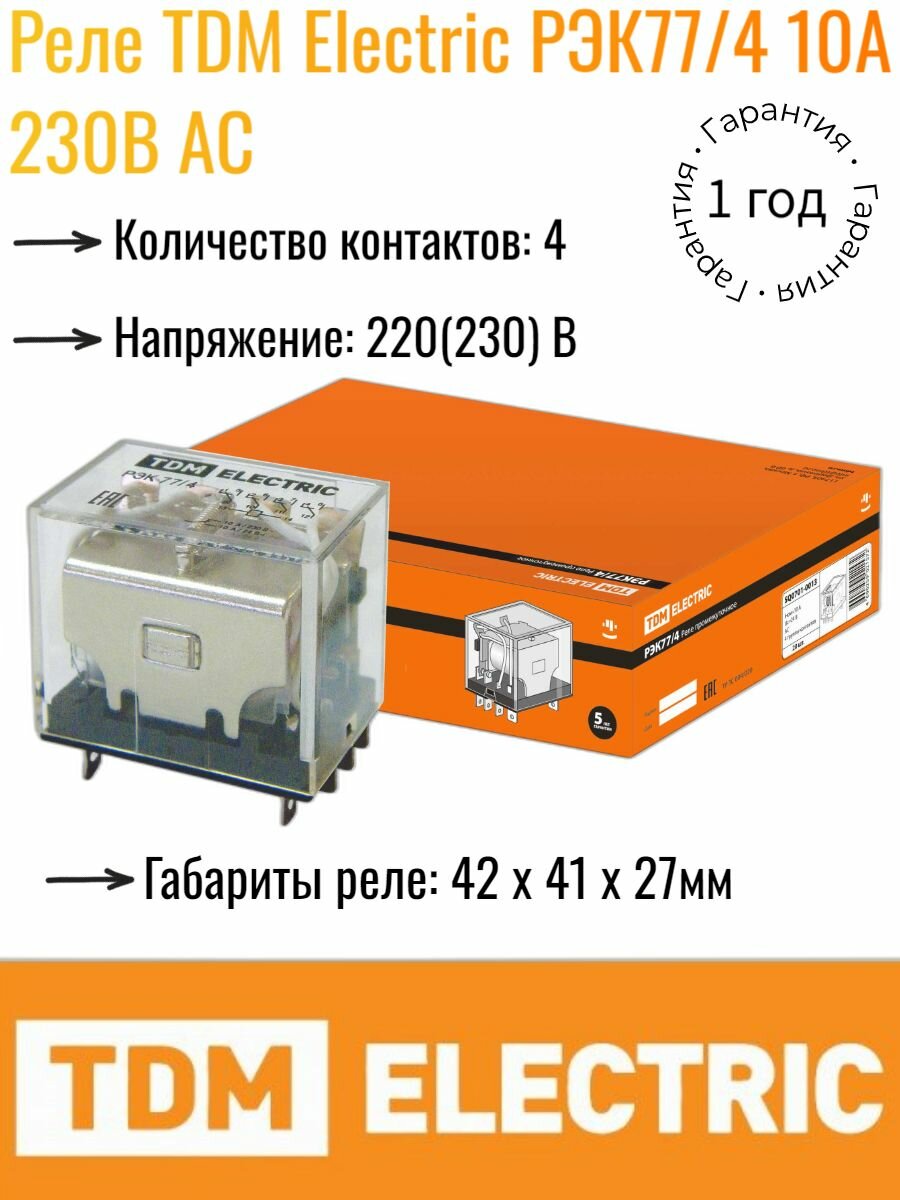 Реле промежуточное TDM Electric РЭК77/4 10А 230В АC интересное: