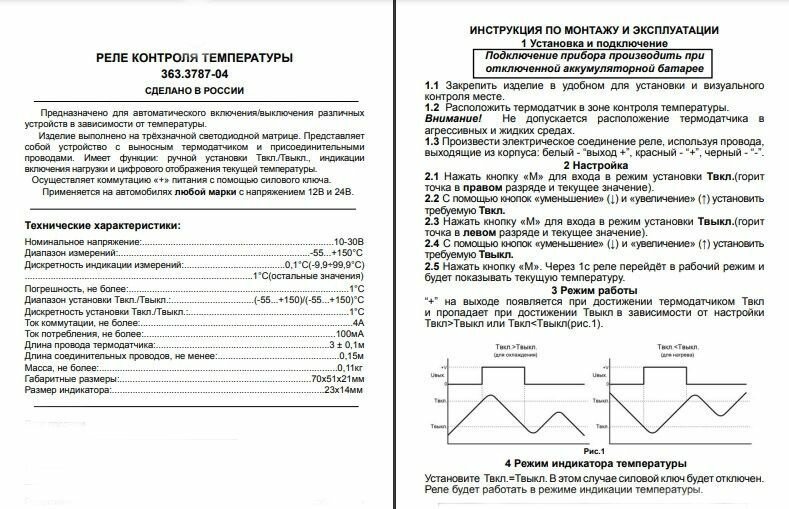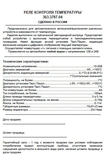 Реле контроля температуры 363.3787-04 12/24В интересное: