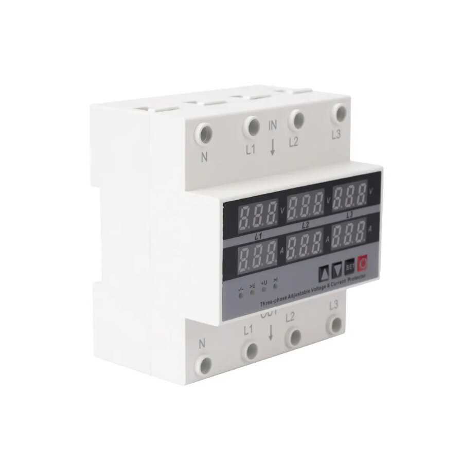 Купить Реле контроля напряжения трехфазное с защитой от перегрузки по току 63А / Многофункциональное защитное устройство на DIN рейку