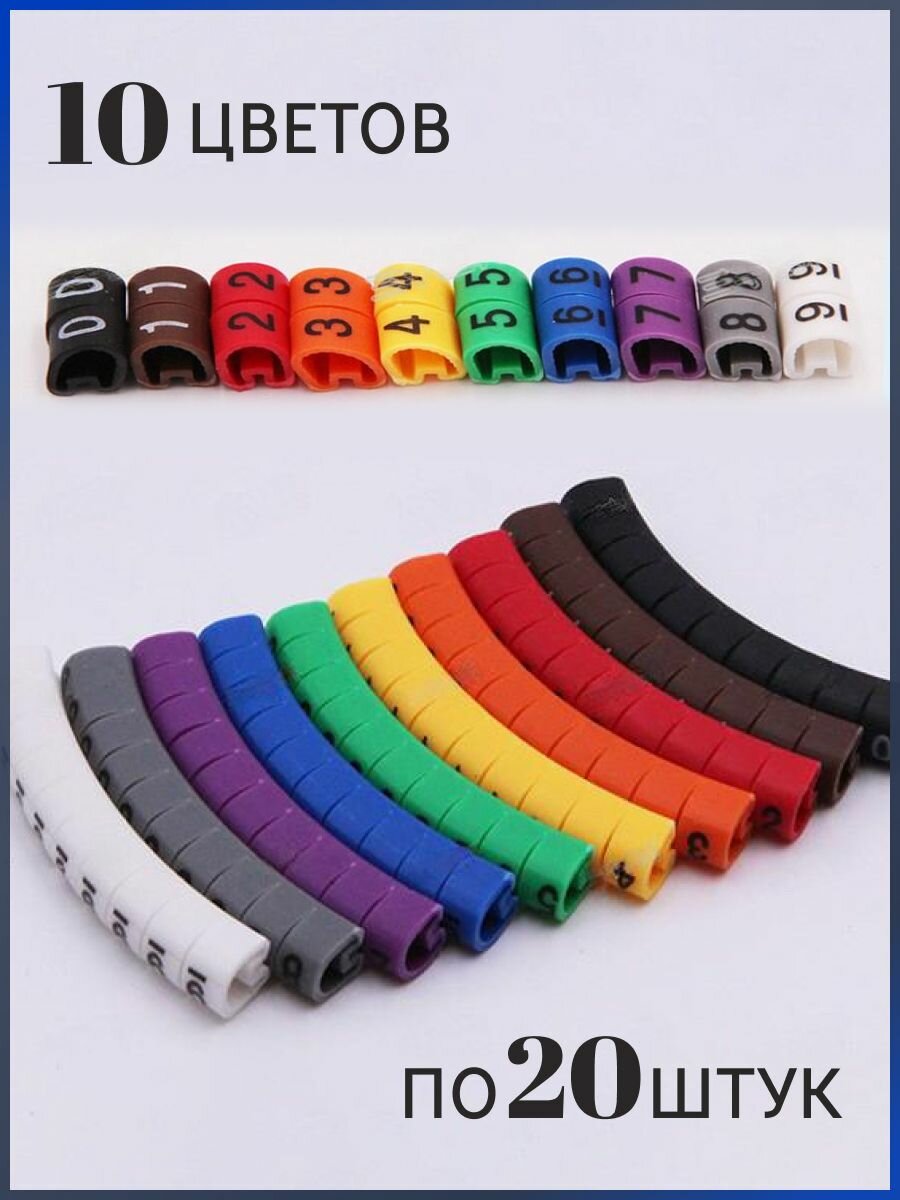 Купить Разноцветные кабельные маркеры с маркировкой от 0 до 9, набор 200 штук
